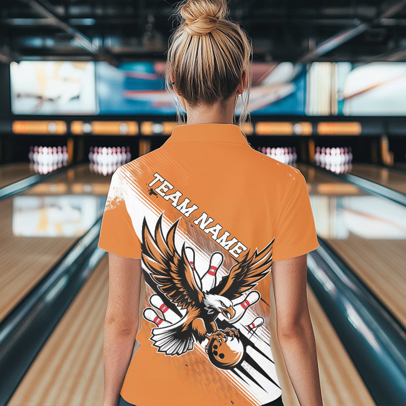Custom Orange Eagle Bowling Jerseys, Eagle Bowling Women Polo Shirts Team Bowlers Uniform IPHW8787