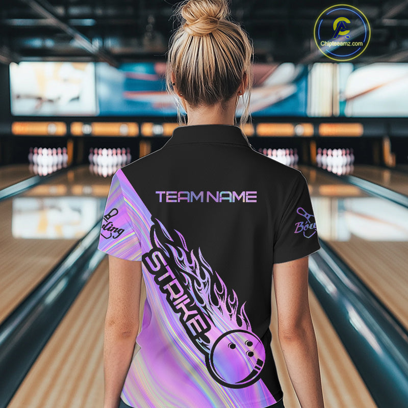 Custom Hologram Flame Strike Bowling Polo Shirts For Women, Bowling Team Bowler Outfit IPHW9858