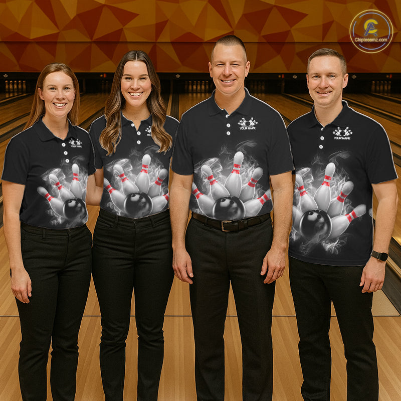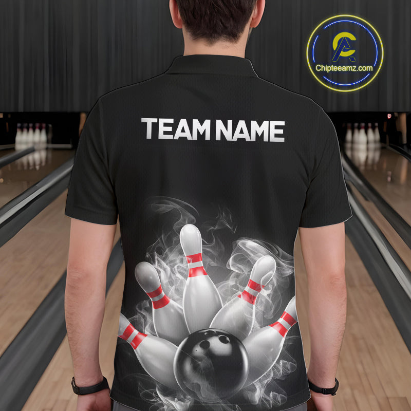 Custom Smoke Bowling Shirts For Men, Bowling Uniform Team Bowling Jerseys IPHW7373