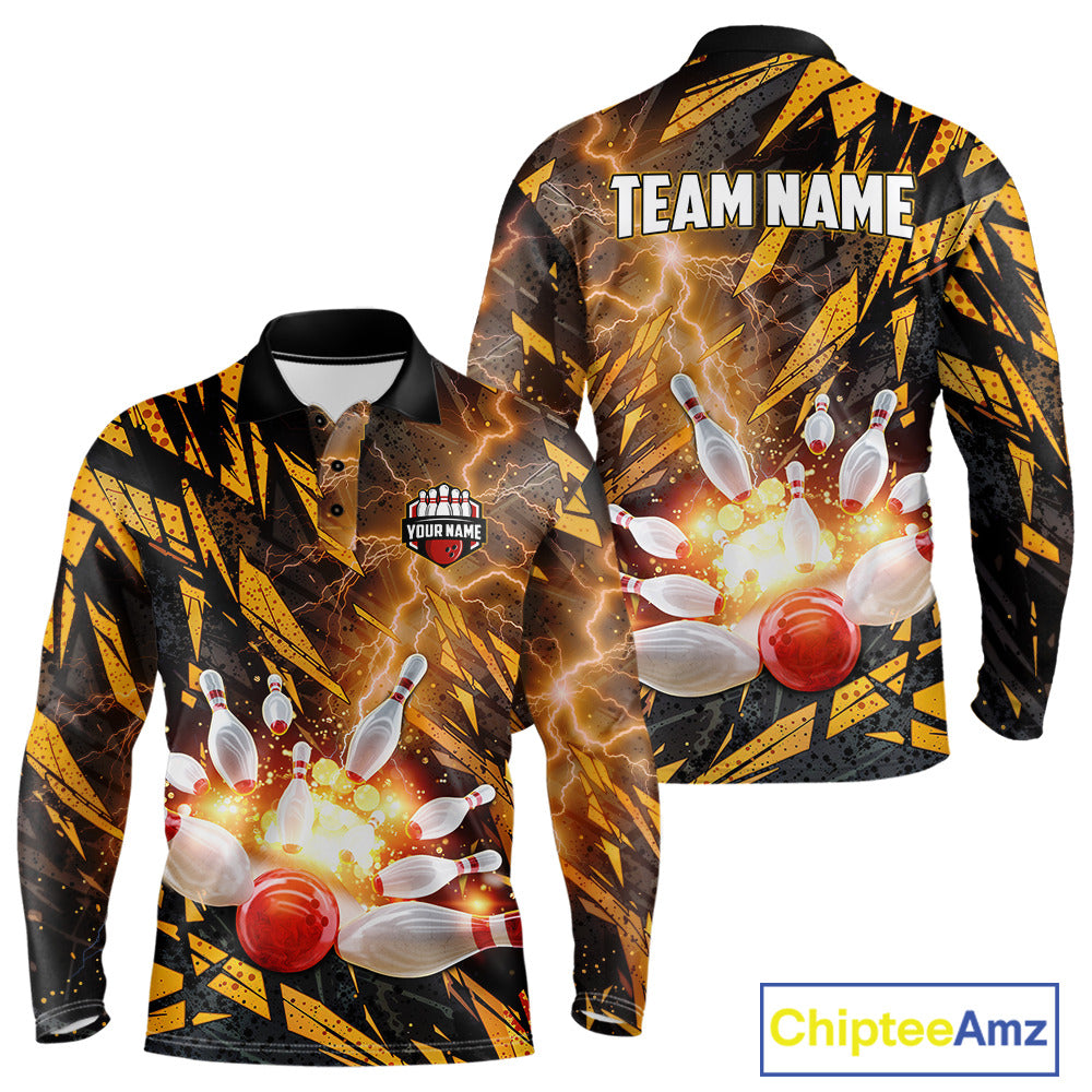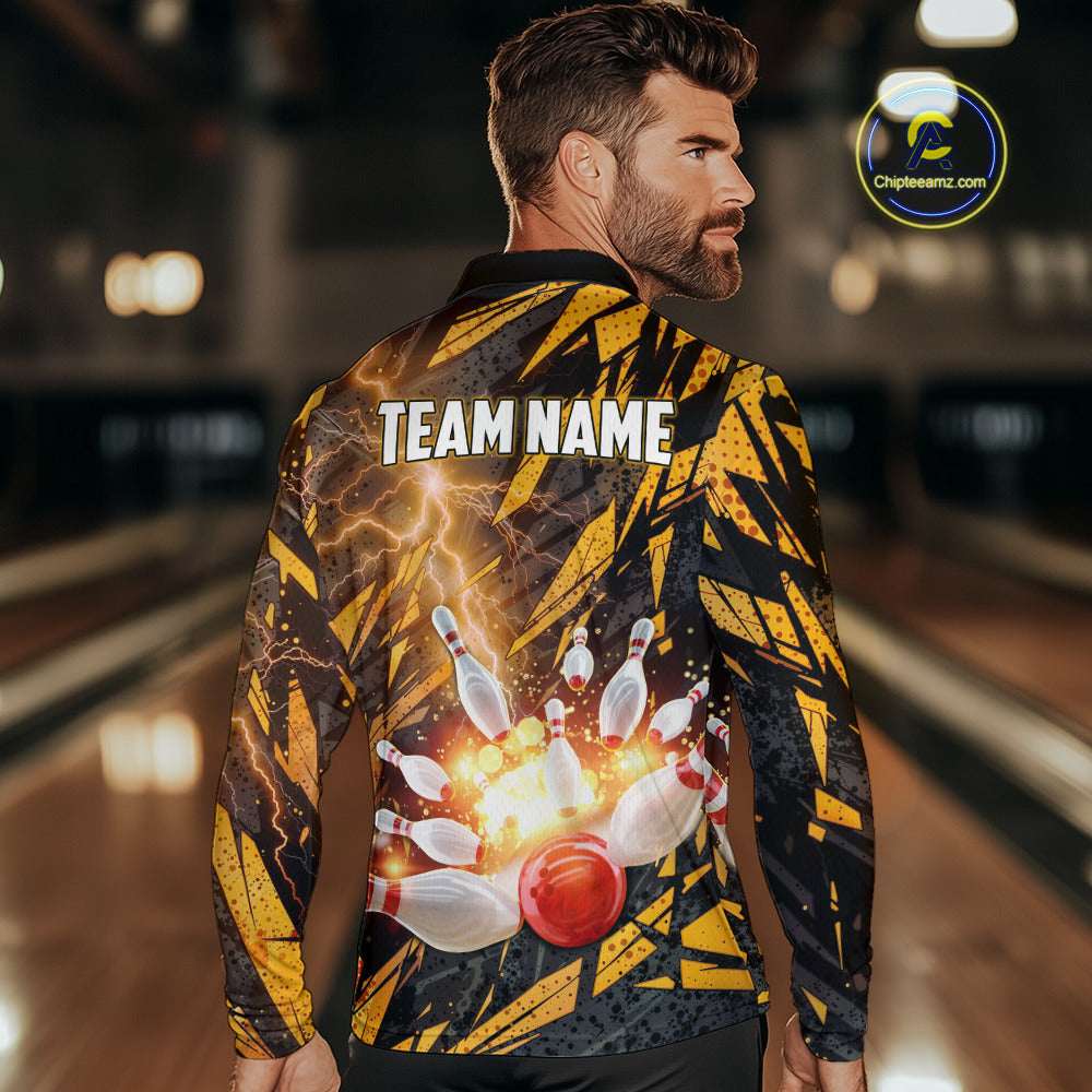 Black and Yellow Camo Lightning Thunder Bowling Shirts For Men Custom Bowling Team Jerseys NQS11153