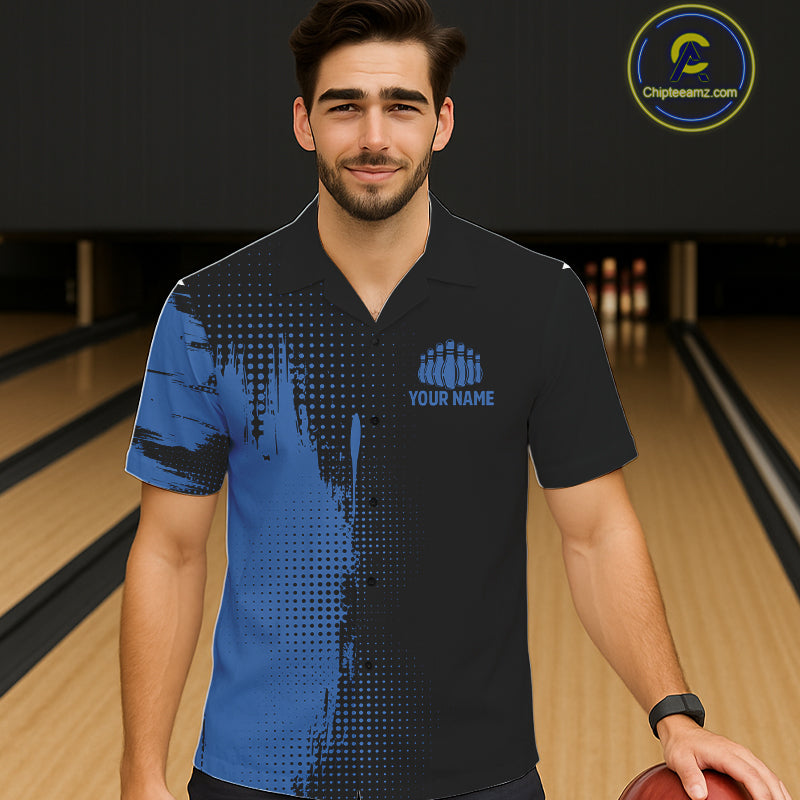 Black and Blue Hawaiian Bowling Jerseys Custom Team Bowling Button-up shirt NQS11320