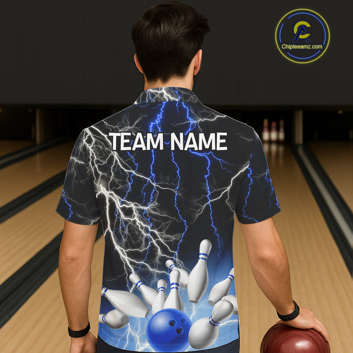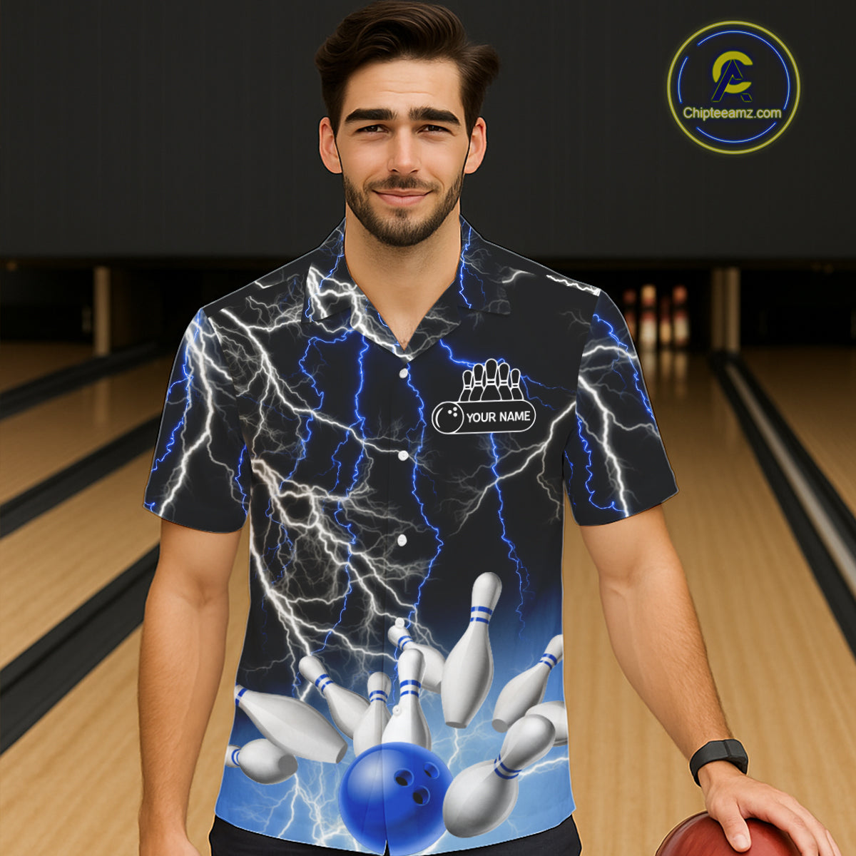 Bowling Hawaiian Shirt Custom Blue lightning thunder team bowling league jerseys NQS11261