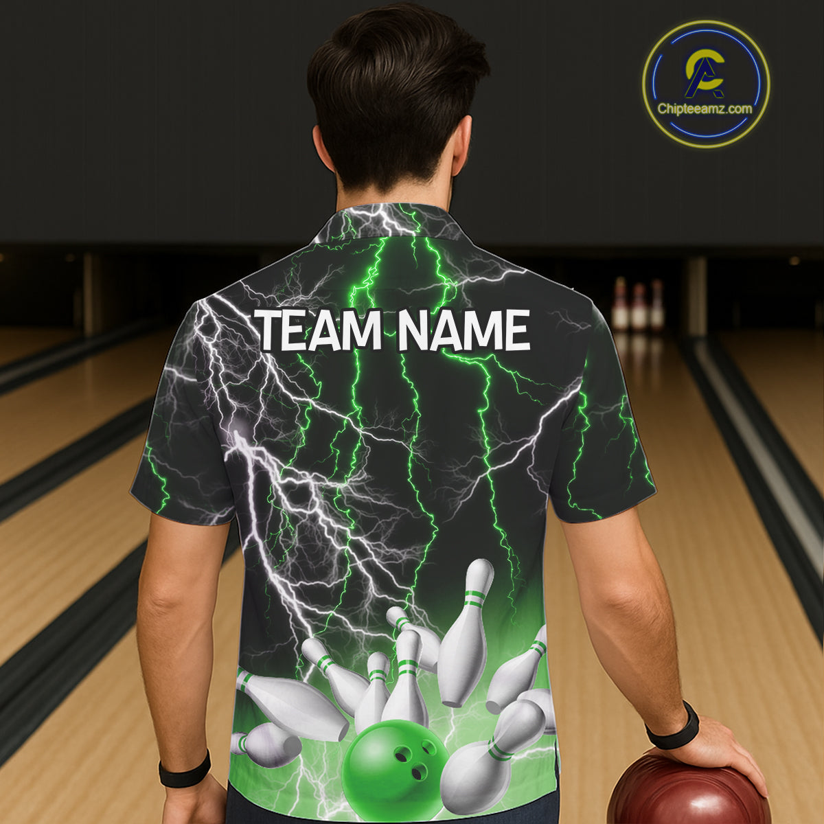 Bowling Hawaiian Shirt Custom Green lightning thunder team bowling league jerseys NQS11262