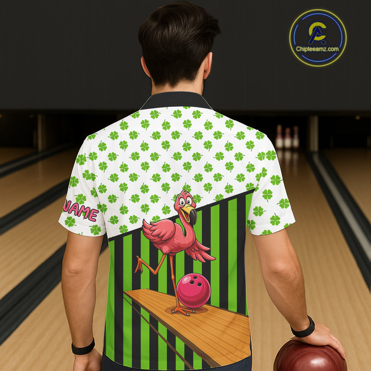 Green shamrock pattern flamingo Bowling Hawaiian Shirt Custom St Patrick's Day Team bowling outfit NQS11247