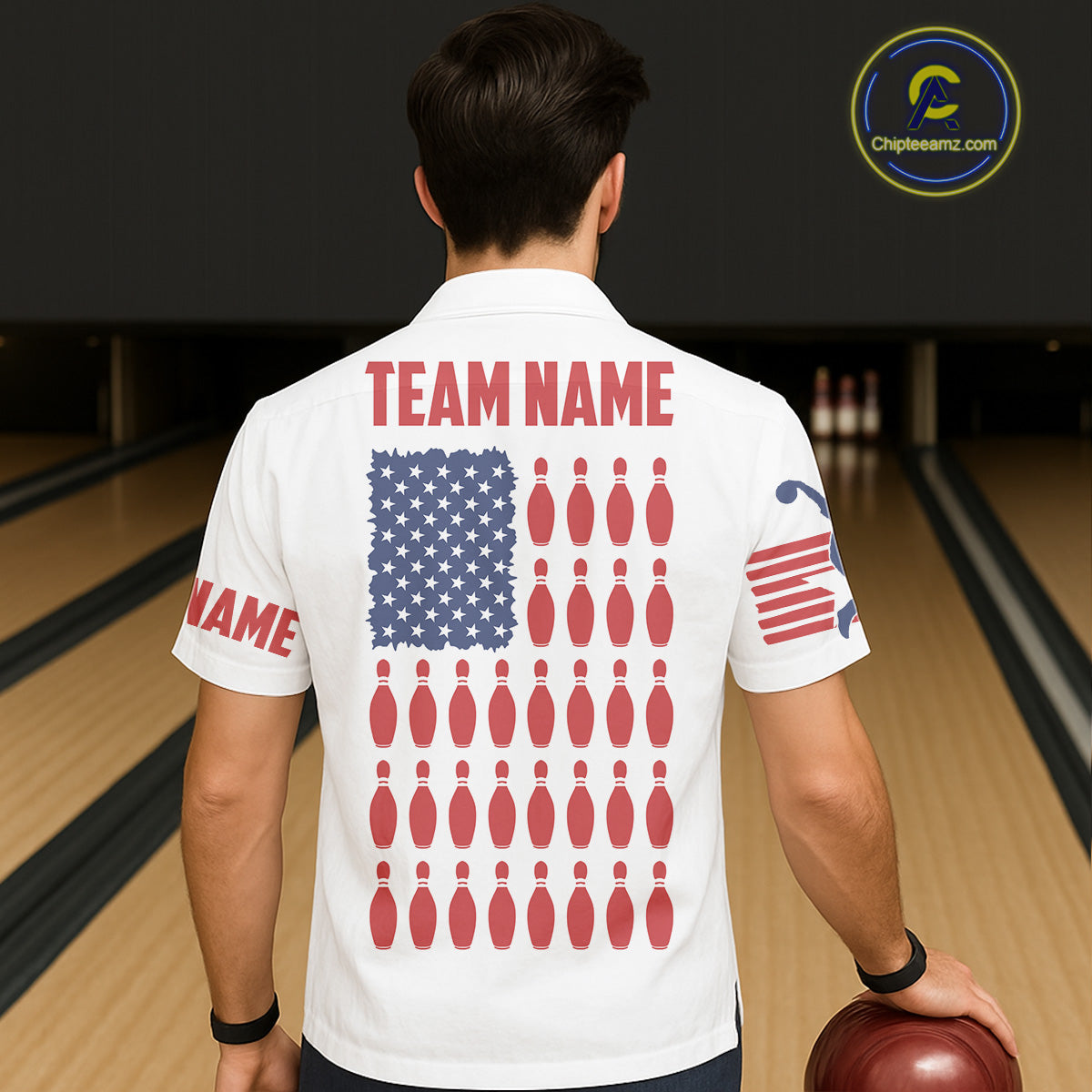 Customizable Patriotic American Flag Bowling Pins Hawaiian Shirts For Men And Women, Bowling Team Shirt IPHW3809