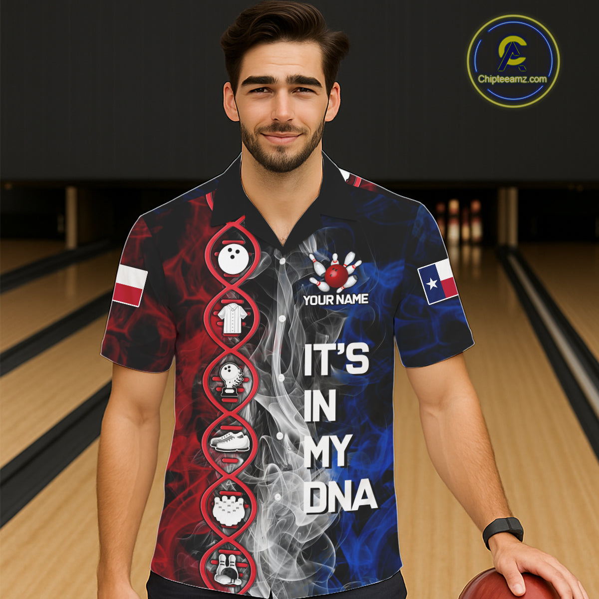 Red, White & Blue Smoke Texas Flag Patriotic Team Bowling Hawaiian Shirt Custom It's in my DNA Shirt NQS11265