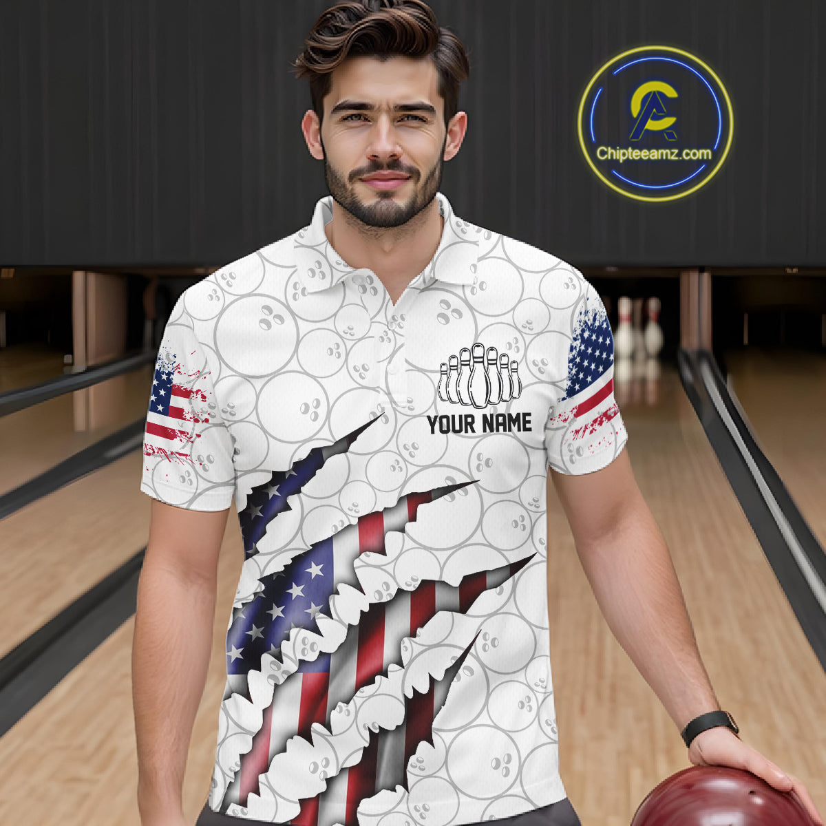 Personalized American Flag Bowling Team Shirts For Men And Women Patriotic Bowling Gifts IPHW5523