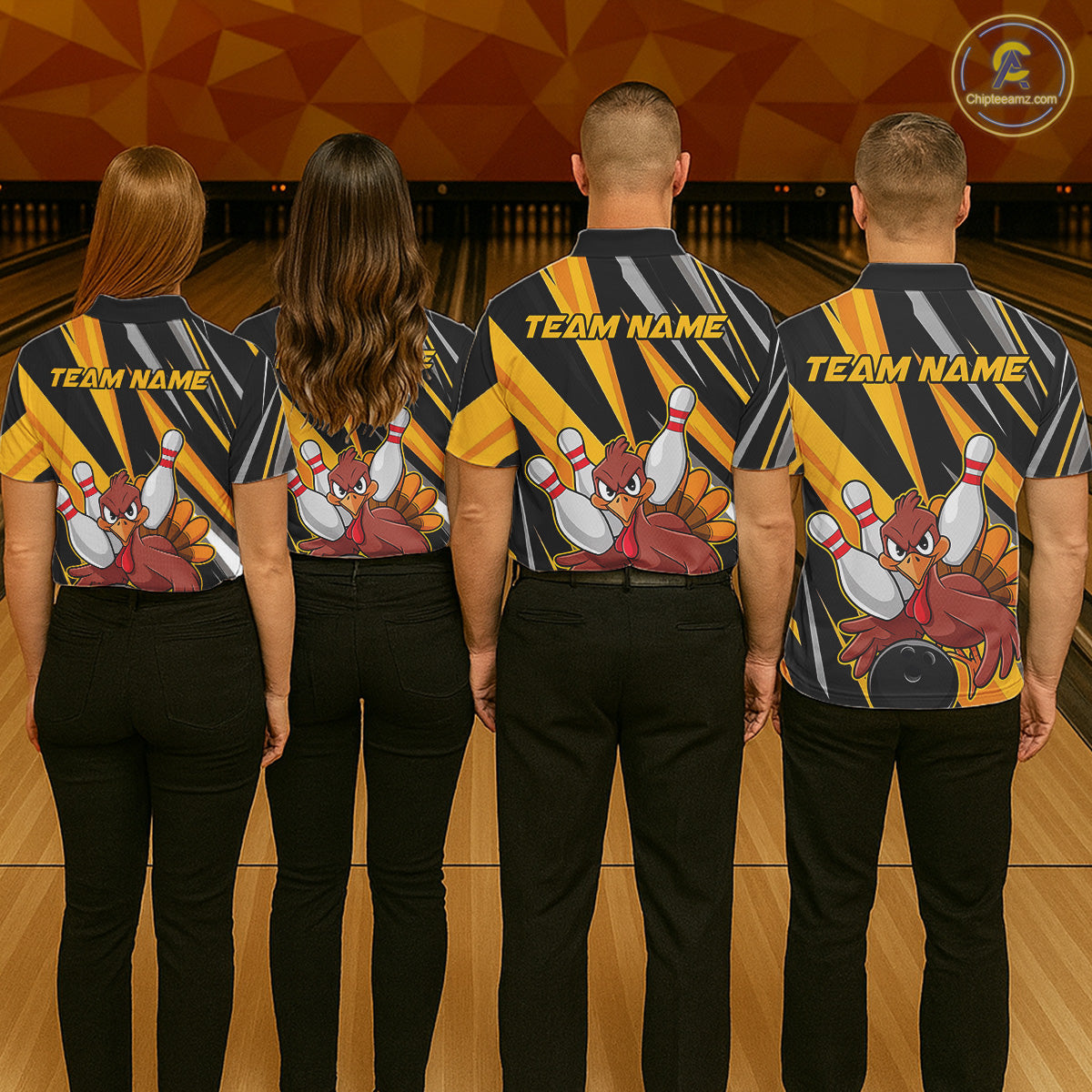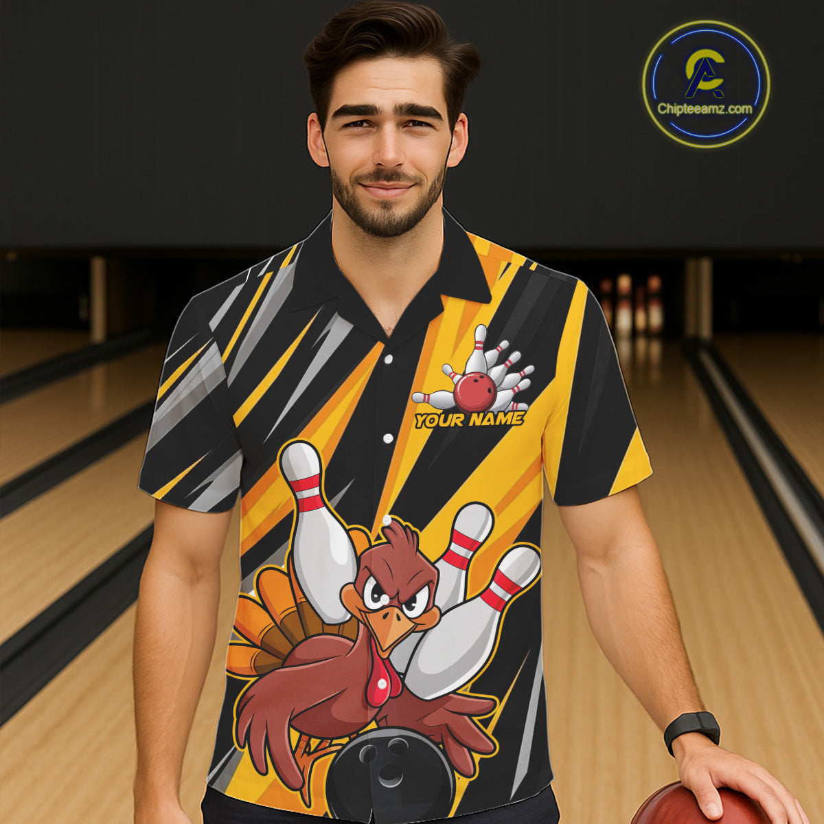 Custom Funny Turkey Bowling Shirts For Men, Yellow Thanksgiving Bowling Shirt Team Fall Outfits IPHW7661