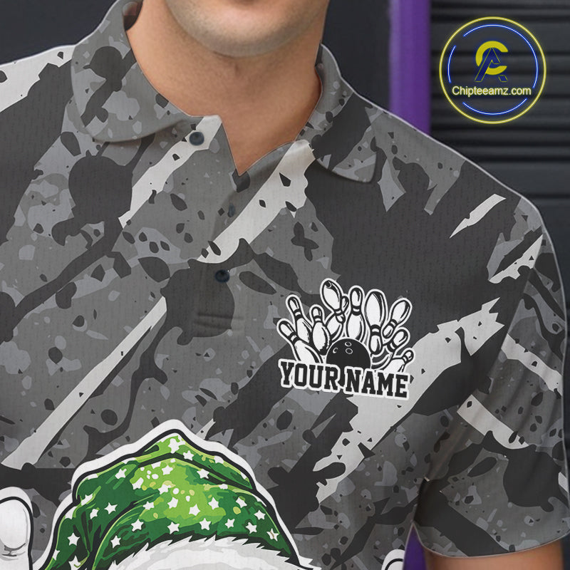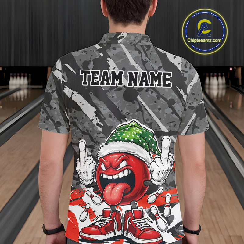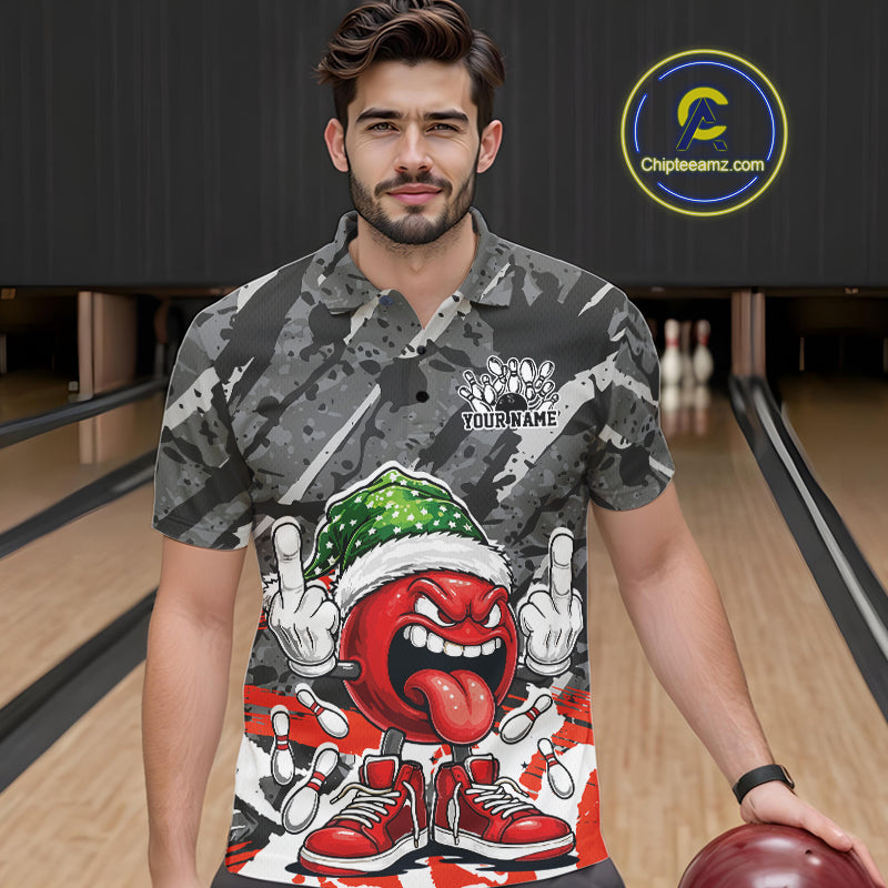 Custom Funny Christmas Bowling Men Polo Shirts, Crazy Bowling Ball Xmas Outfit IPHW10134