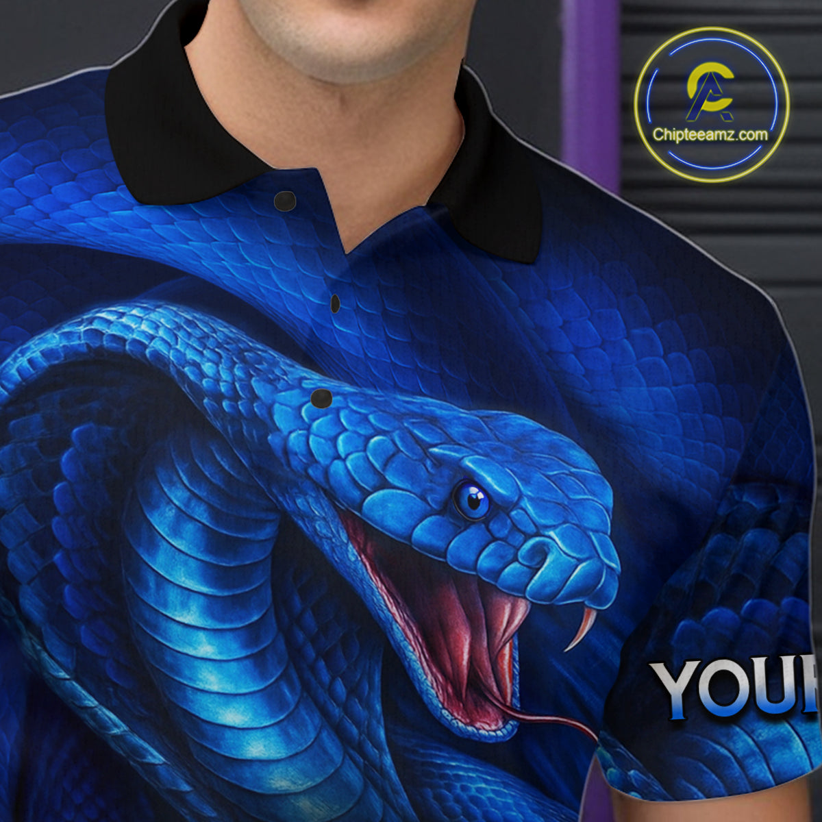 Custom 3D Blue Cobra Snake Bowling Team Shirt Bowling Jersey Outfit for Men Polo & Quarter-Zip QZT723