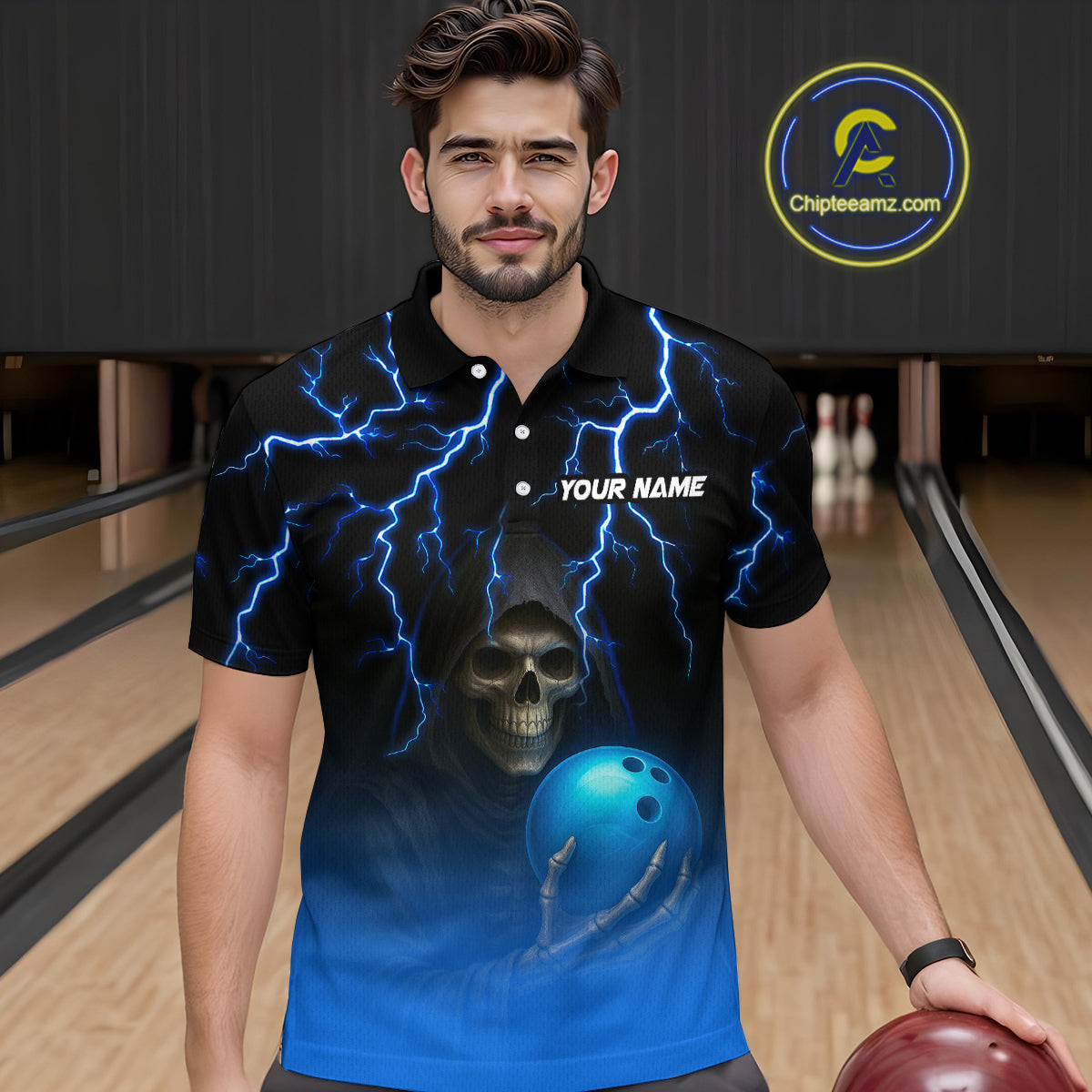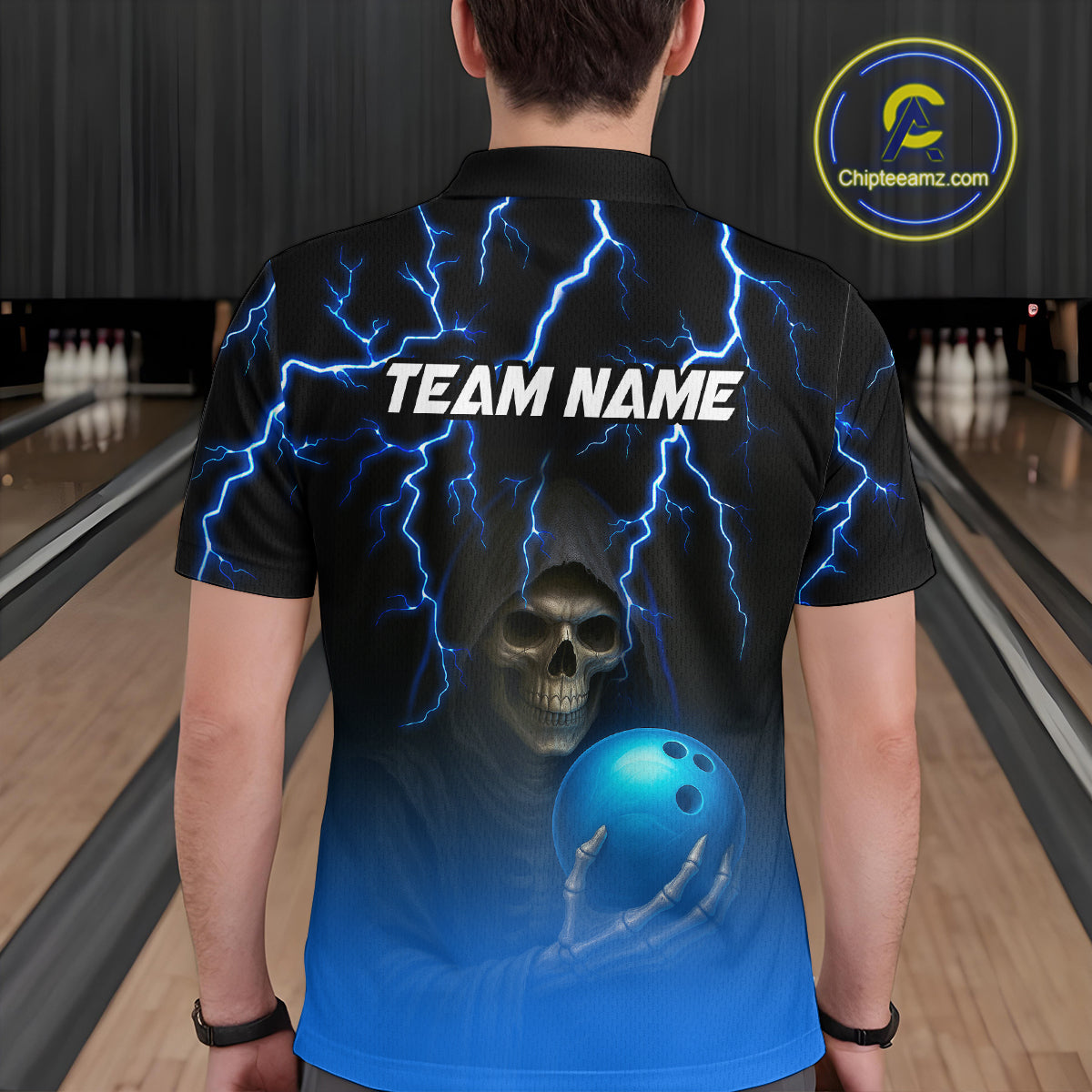 Custom Blue Thunder Skeleton Bowling Jersey for Men Bowling Polo & 1/4 Zip Bowling Team Shirts HNT108