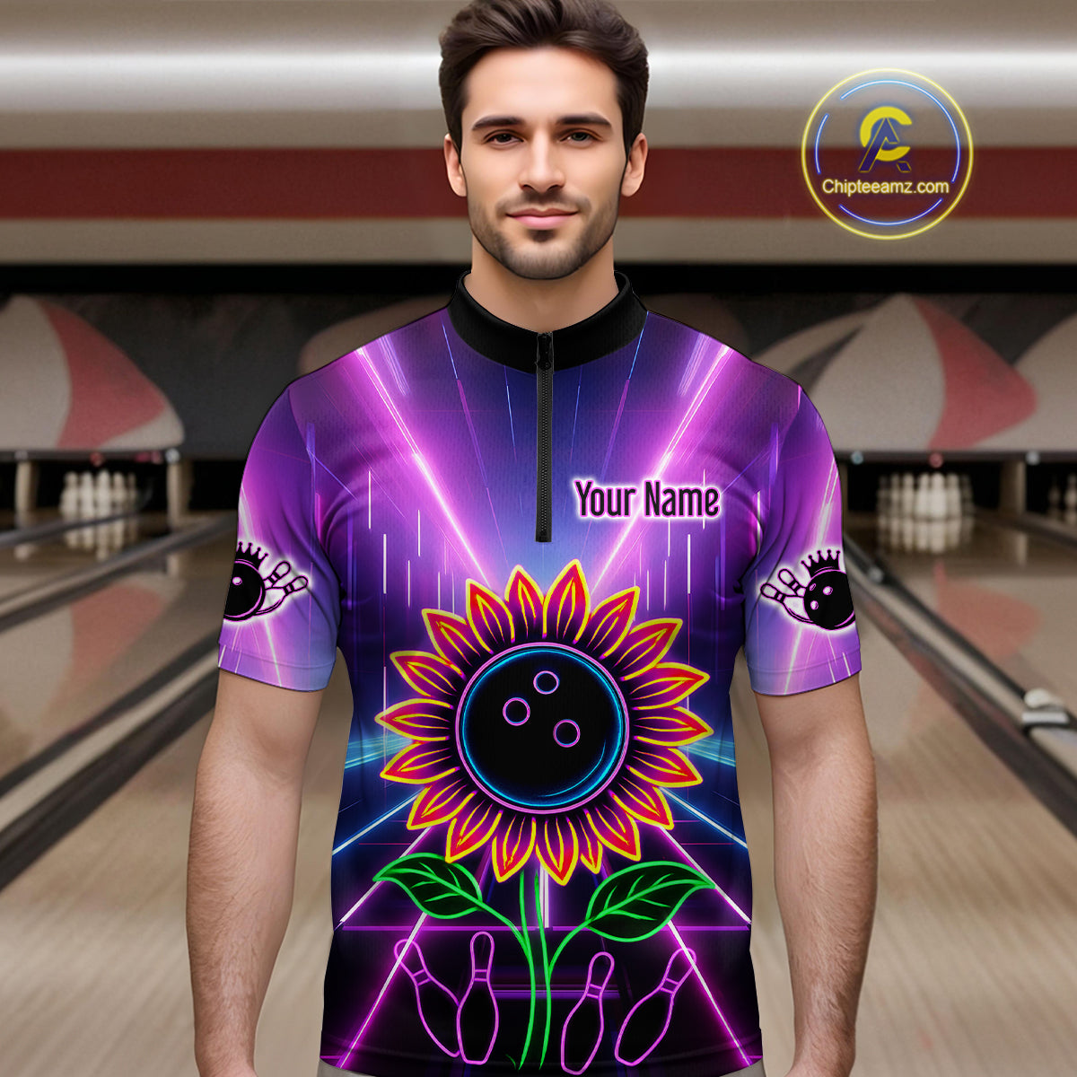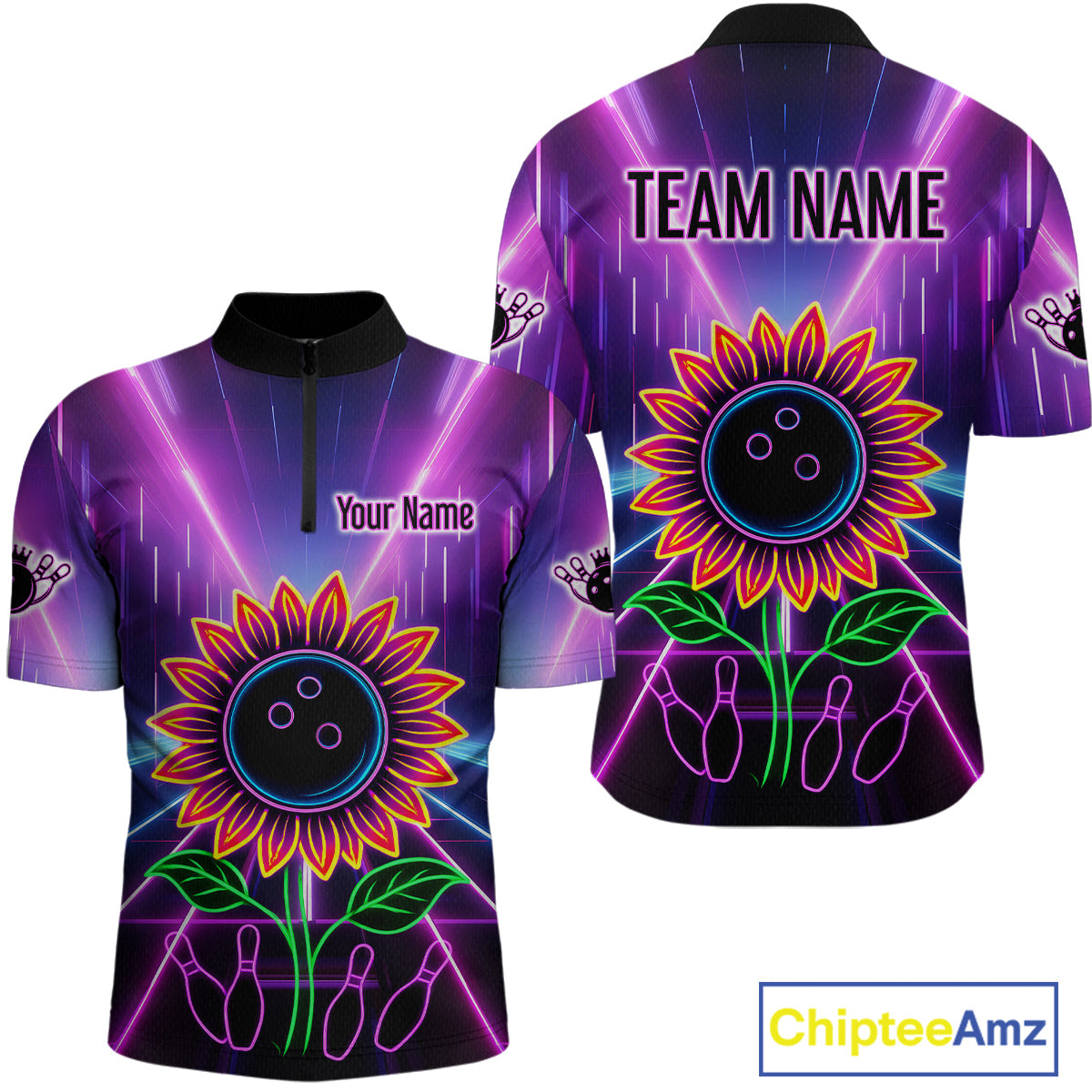 Custom Neon Lightning Sunflower Bowling Shirt Bowling Team Jersey for Men Bowling Polo & 1/4-Zip QZT770