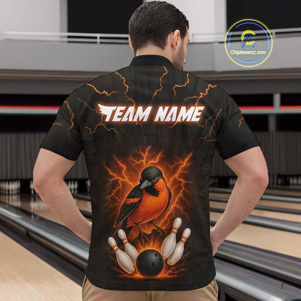 Custom Thunder Lightning Orioles Bowling Shirt Polo & Quarter-Zip Bowling Team League Bowling Jersey QZT716