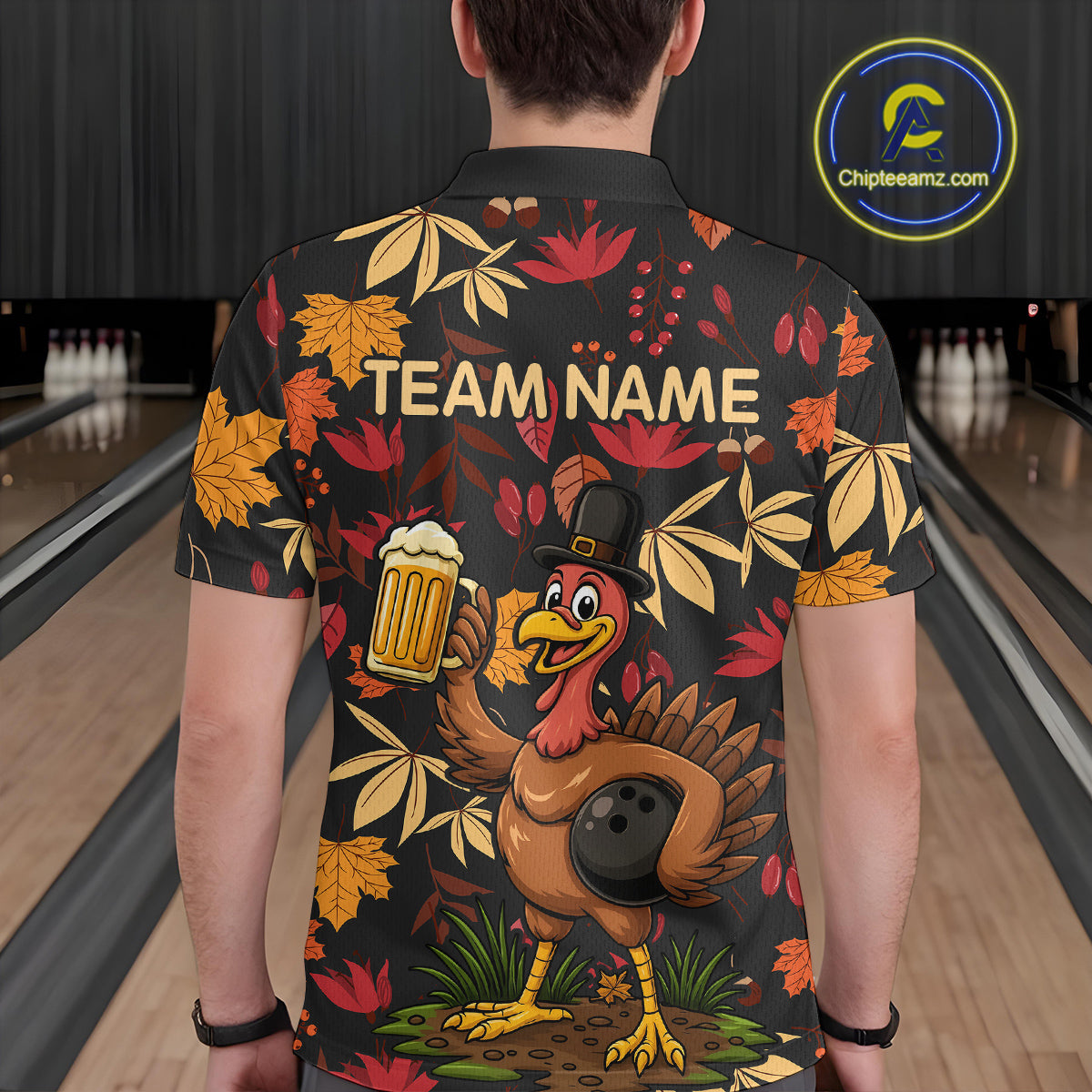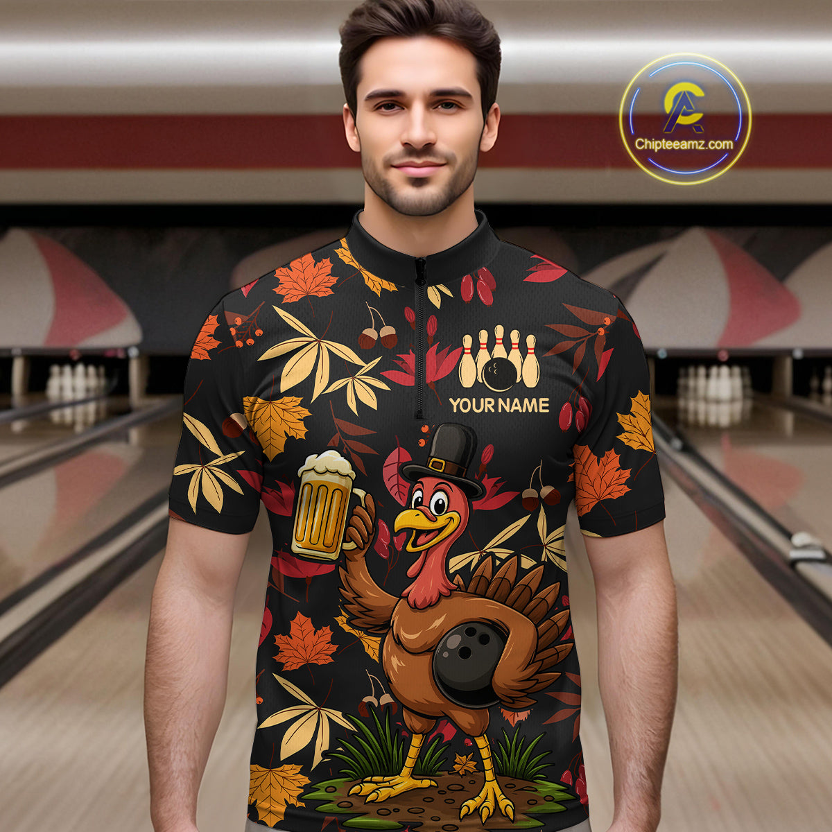 Funny Turkey Bowling Beer Thanksgiving pattern Custom Team bowling jerseys men, bowling gifts for men NQS10963