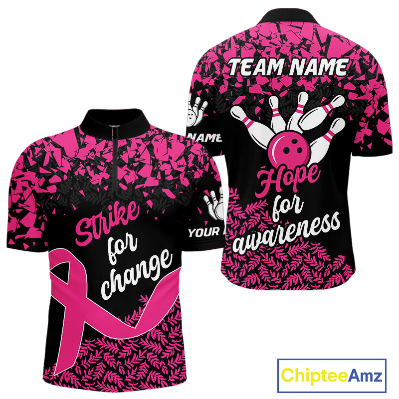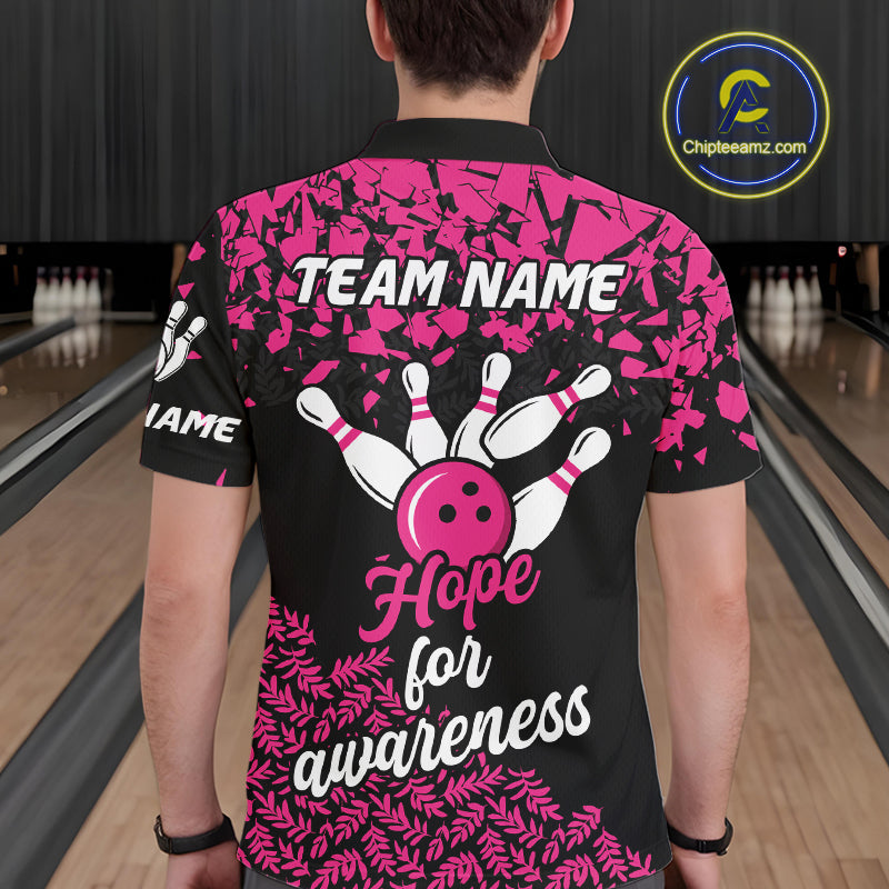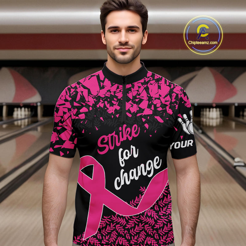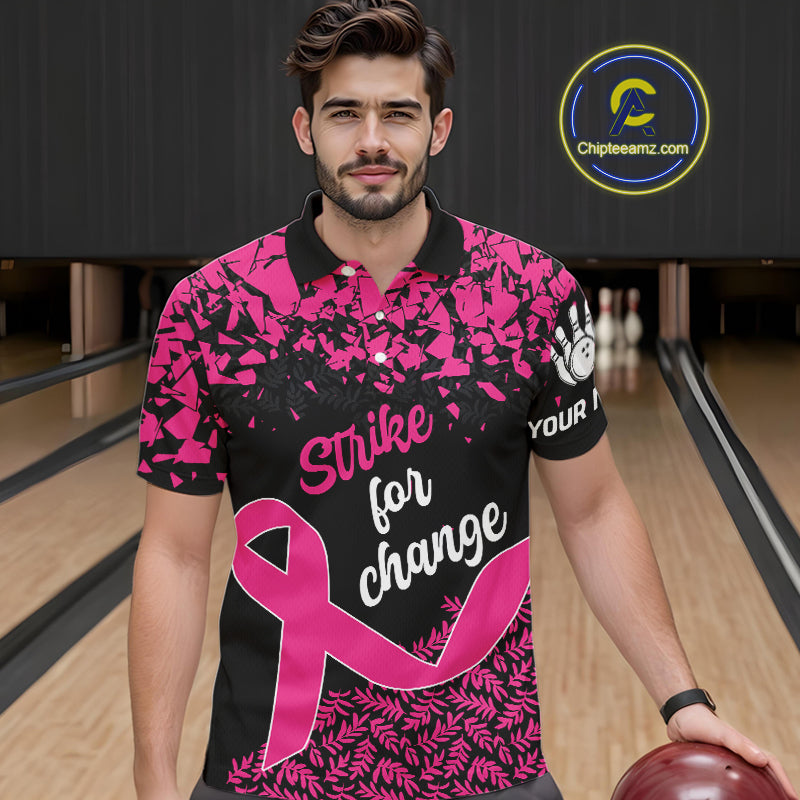 Strike For Change Hope For Awareness Custom Bowling Shirt For Men, Breast Cancer Bowling Jerseys TDM4634