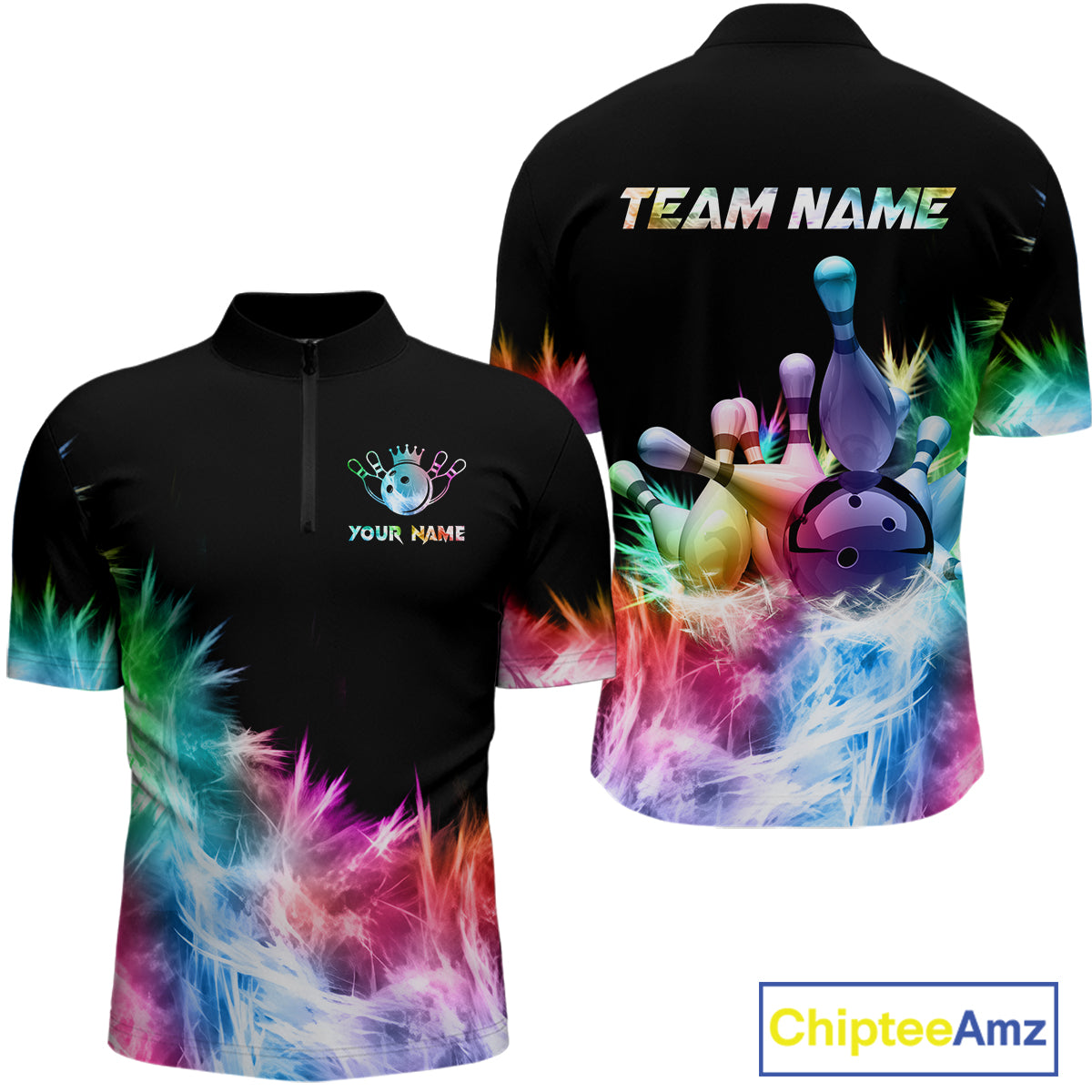 Icy Colorful Light Men's Bowling Shirt Custom Bowling Jersey Outfit Team Polo & Quarter Zip TDM4654