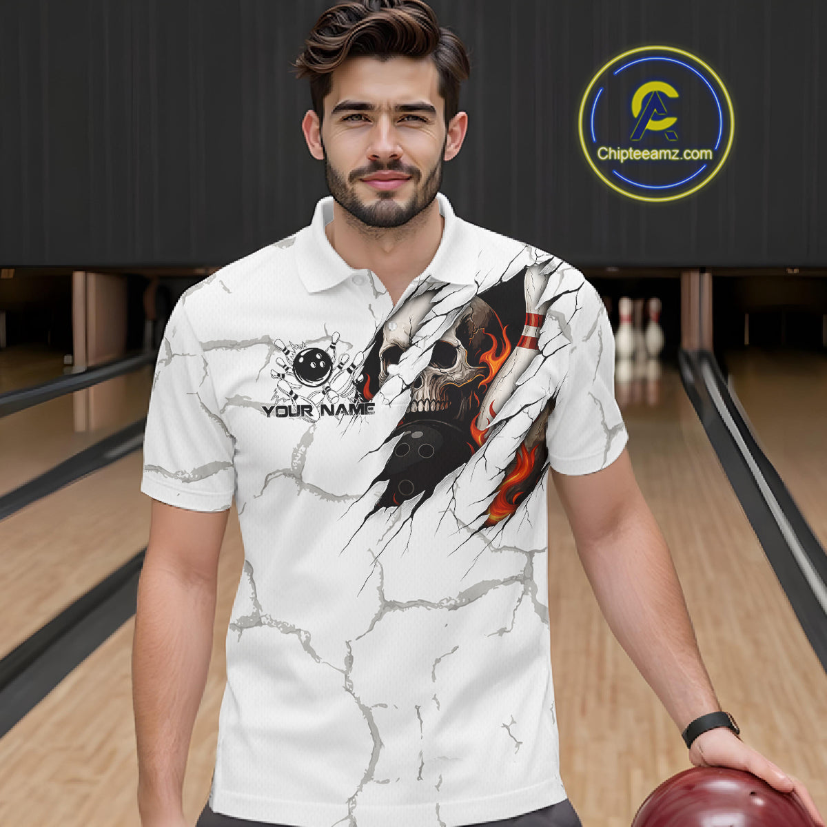 Personalized White Grunge Flame Skull Bowling shirts for men Custom Team Bowling League Shirts NQS10536