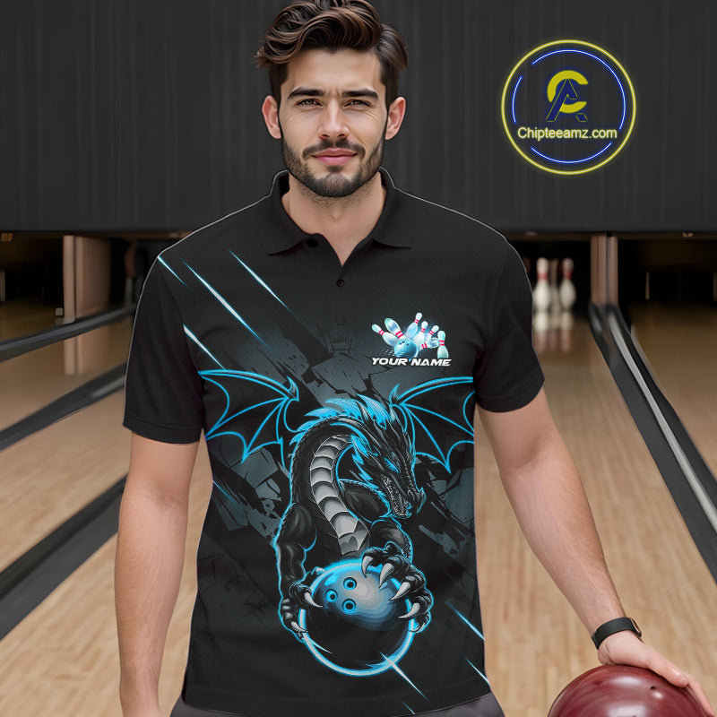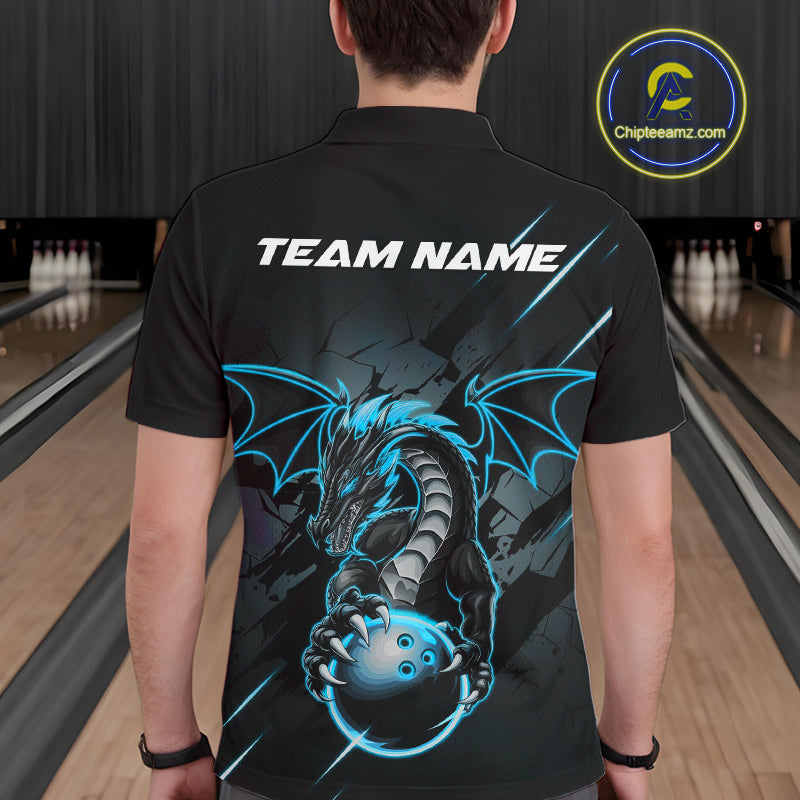 Custom Glowing Blue Dragon Bowling Team Polo Shirts For Men, Dragon Bowling Jerseys IPHW9541