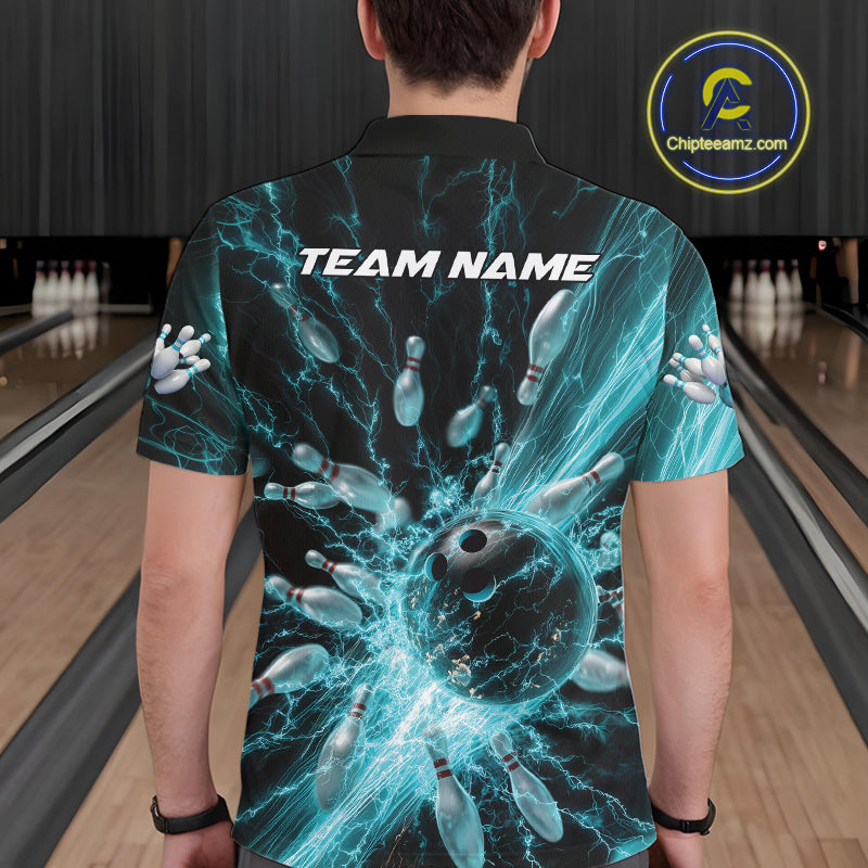Custom Blue Thunder Lightning Bowling Team Men Polo Shirts, Bowling Jerseys IPHW9742