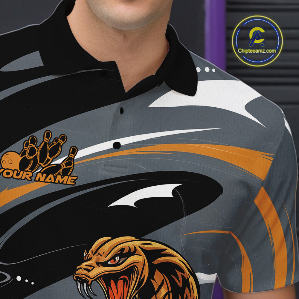 Custom Gray And Yellow Cobra Snake Bowling Polo Shirt For Men, Cobra Bowling Team Jersey IPHW9892