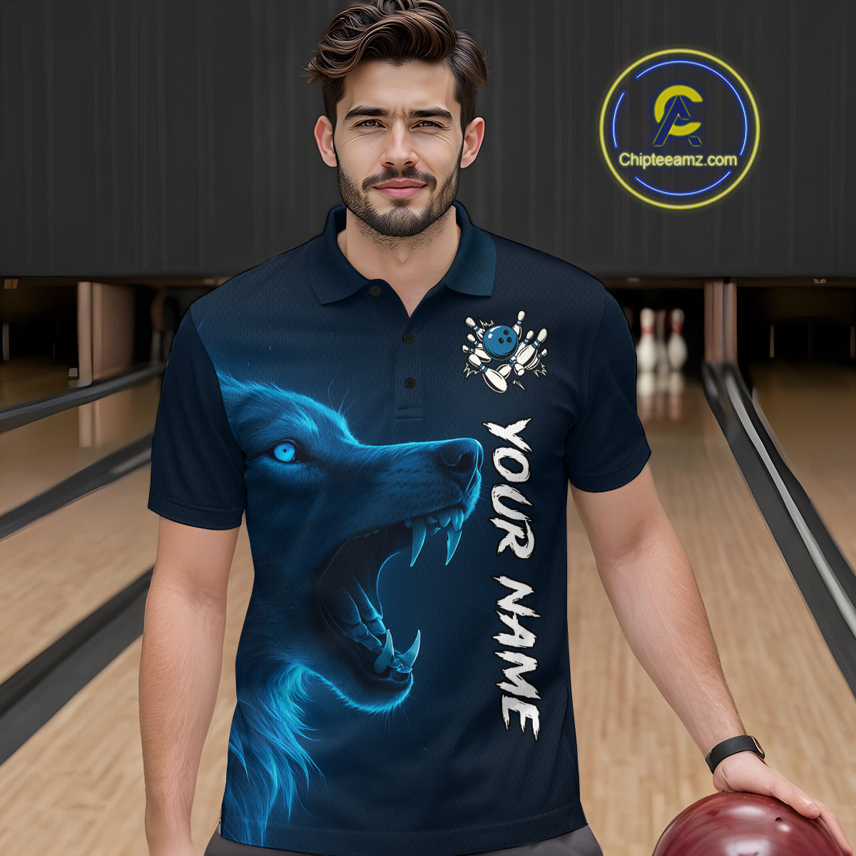 Custom Wolf Bowling Jersey for Men Polo & 1/4 Zip Bowling Team Shirts Bowling League HNT149