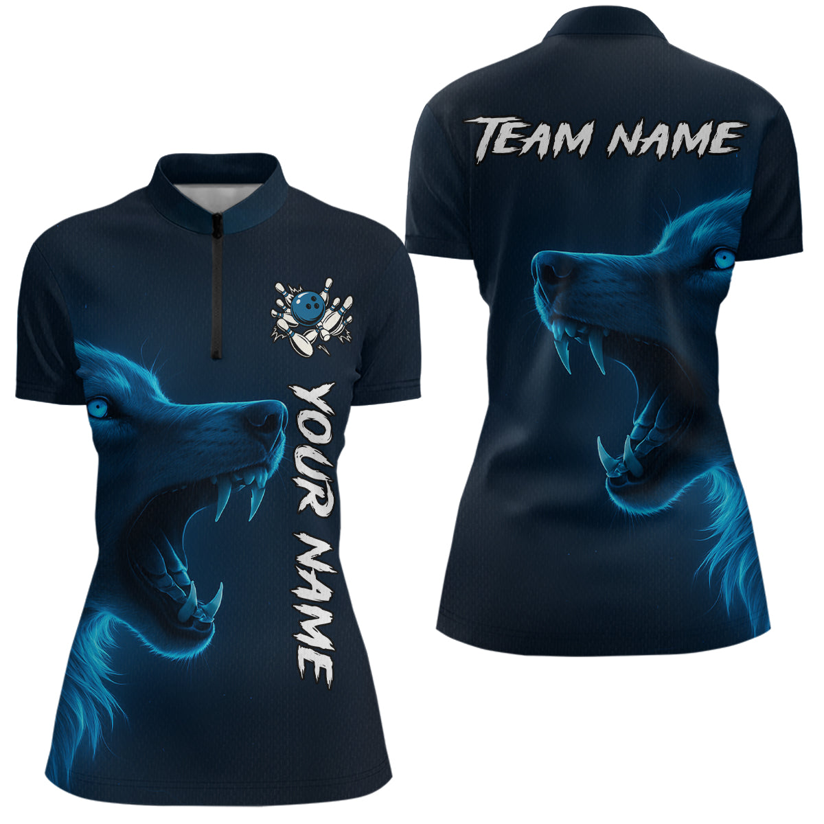 Custom Wolf Bowling Jersey for Women Polo & 1/4 Zip Bowling Team Shirts Bowling League HNT149