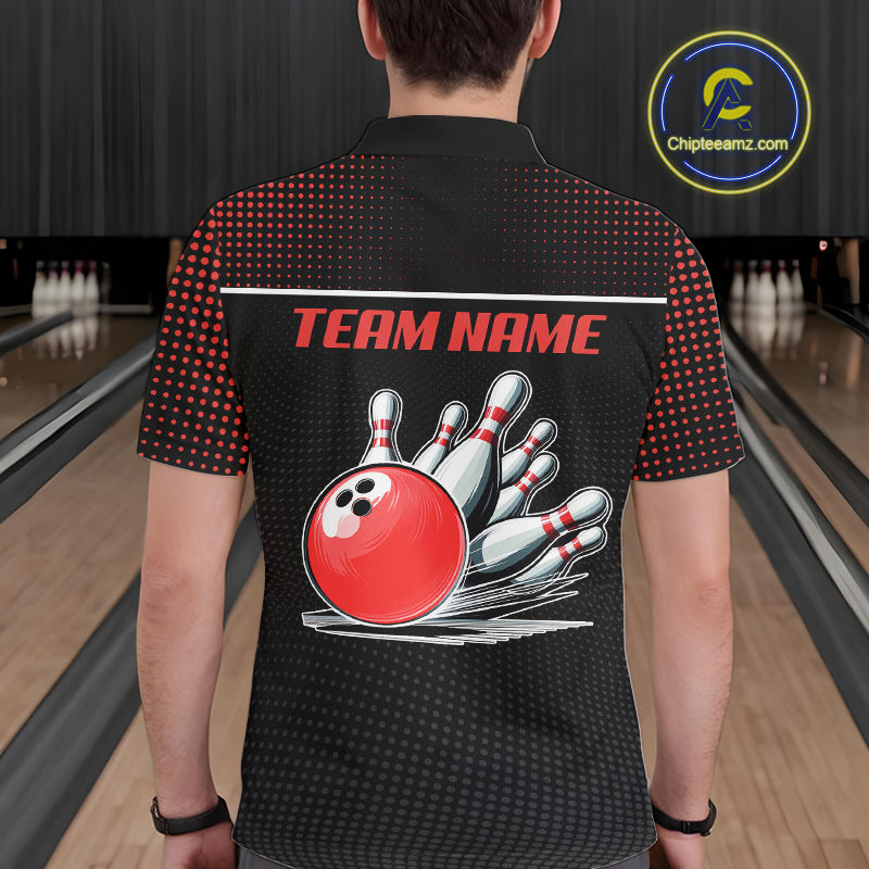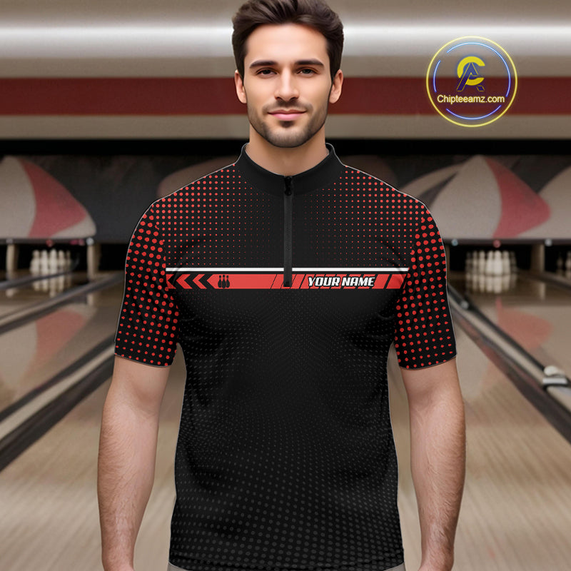 Personalized Black and Red Bowling Polo, 1/4 Zip Shirts For Men Custom Team Bowling Jerseys NQS11101