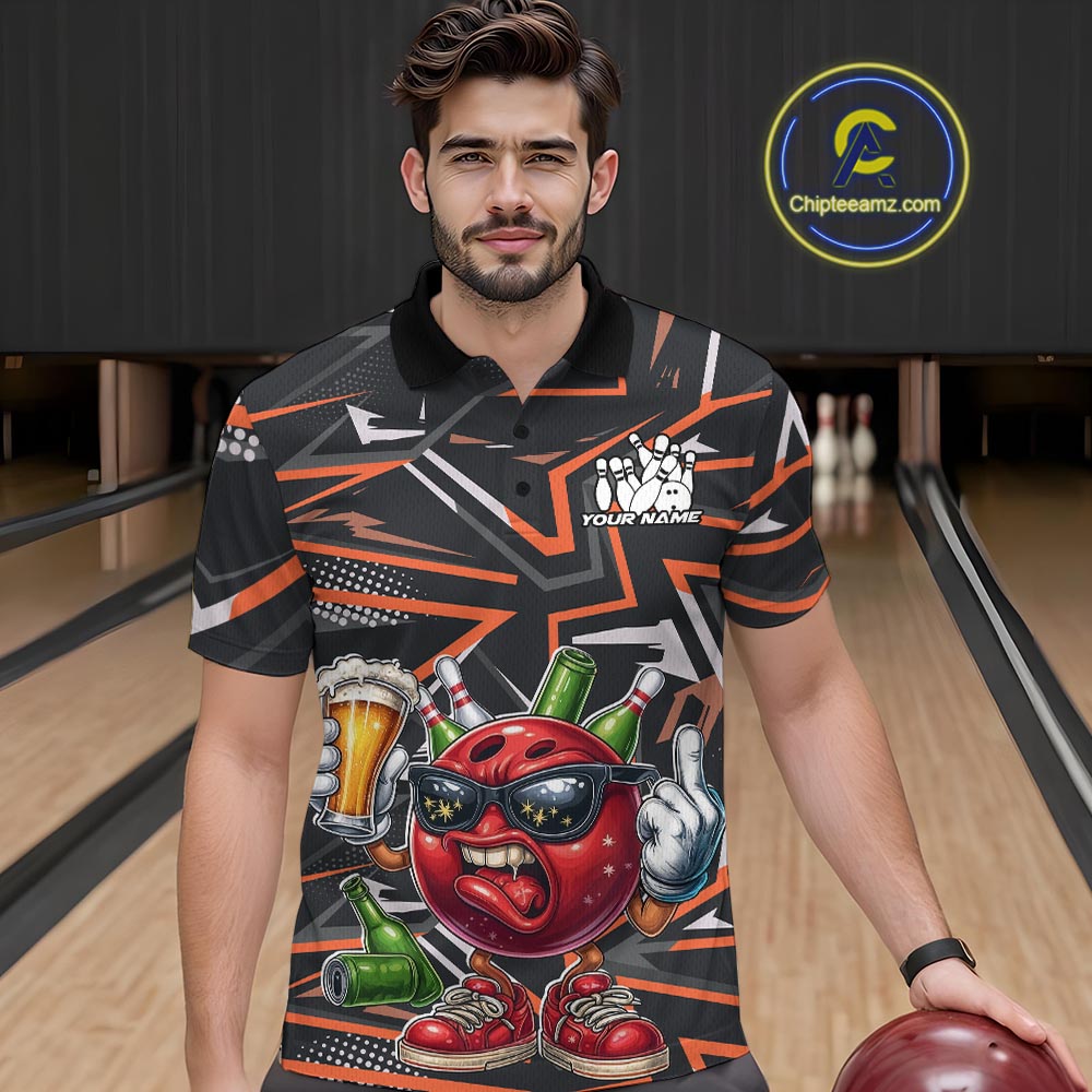 Custom Funny Bowling Ball Drink Beer Bowling Men Polo Shirt, Orange Bowling Team Shirt IPHW10121