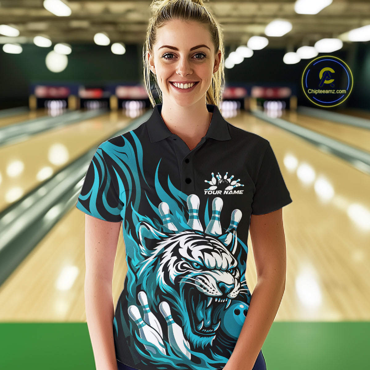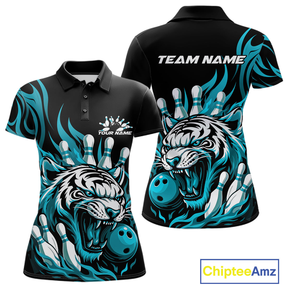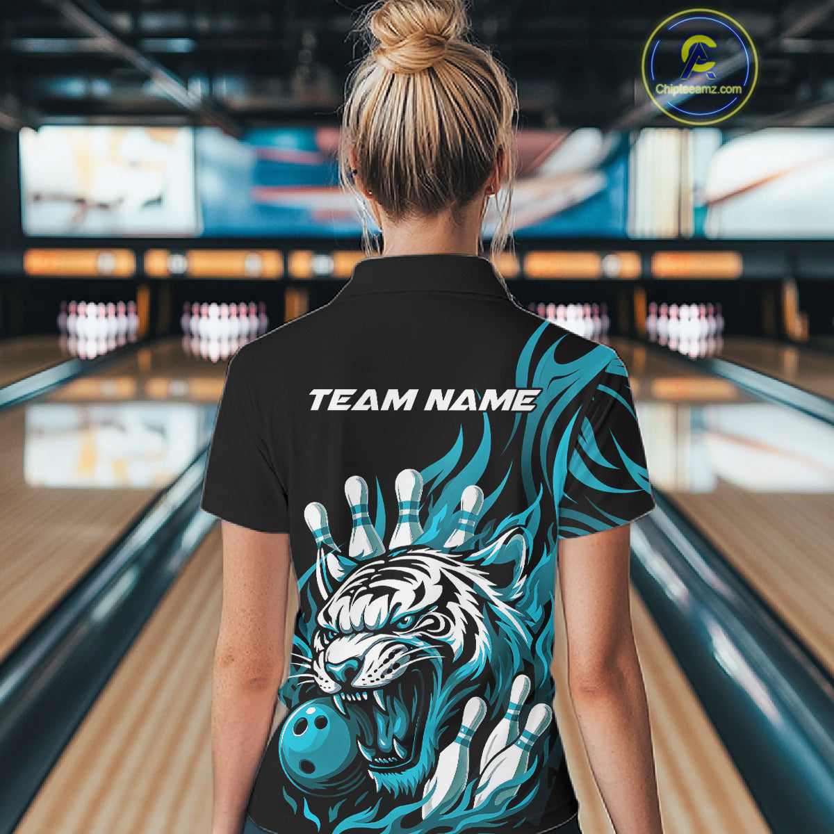 Custom Black And Blue Tiger Women Bowling Jerseys, Tiger Bowling Team League Shirt IPHW10161