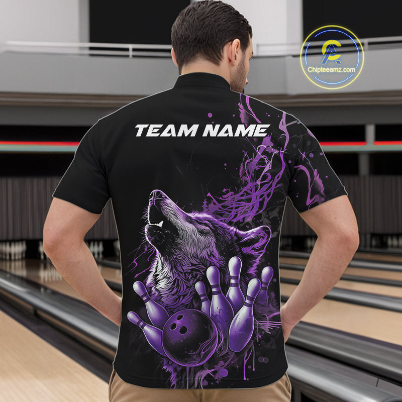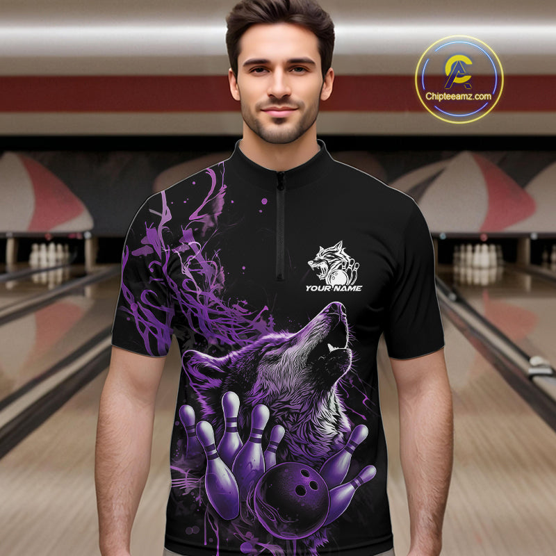 Custom Purple Wolf Howling Men Quarter-Zip Shirt, Wolf Bowling Team Jerseys IPHW10159