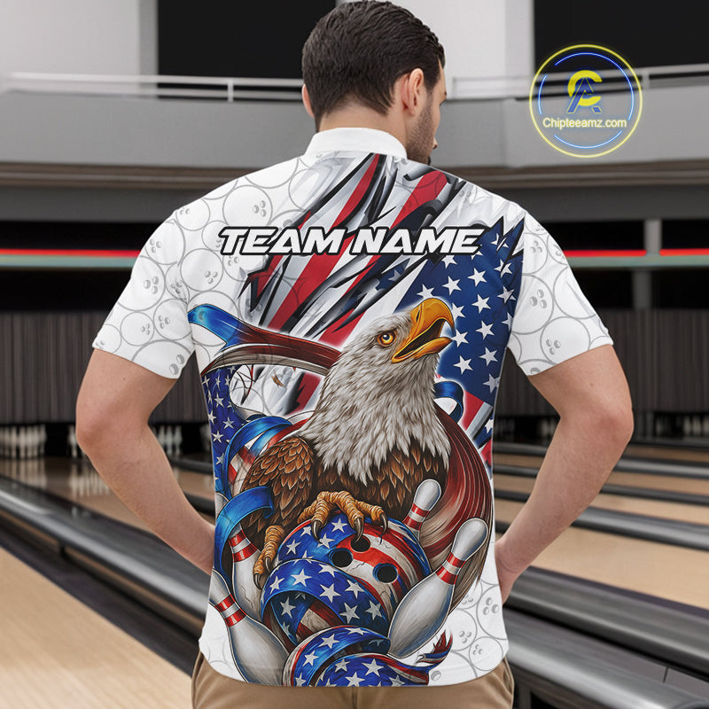 Custom Patriotic US Flag Eagle Bowling Men Shirt, USA Bowling Team League Shirt IPHW10163