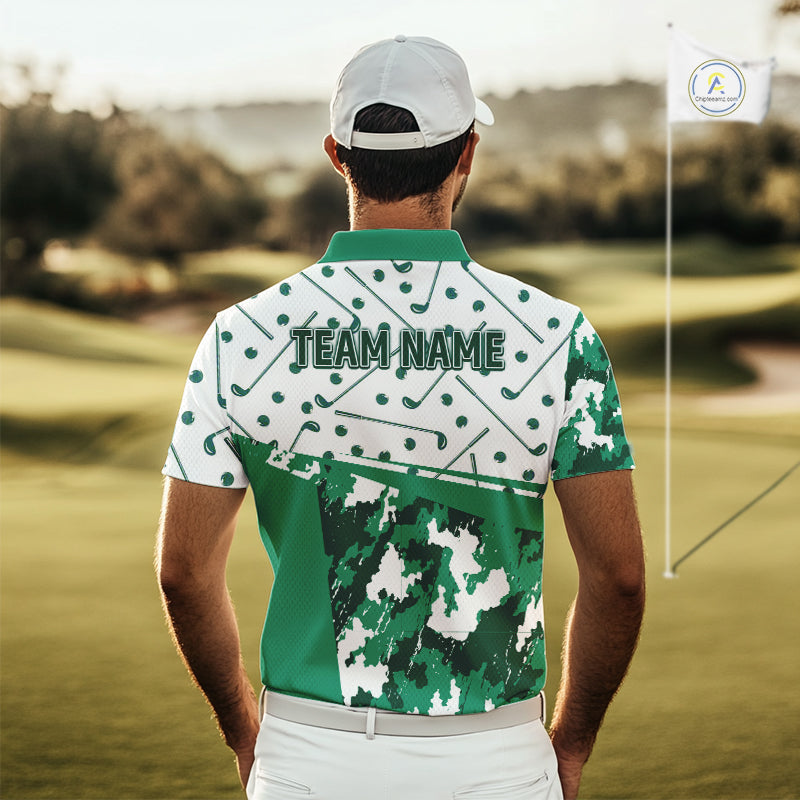 Green Golf Clubs Mens Golf Polo Shirt Custom Name Camo Pattern Golf Shirts Custom Team Golf Top NHN0017