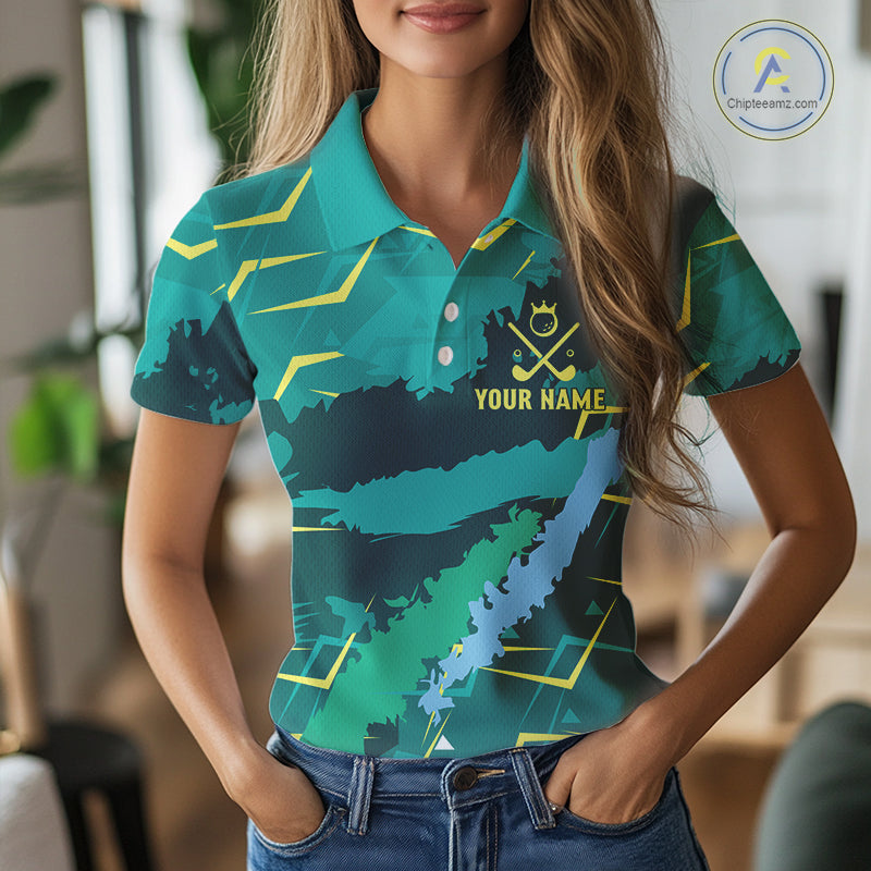 Womens Golf Polo Shirts Green Golf Clubs Custom Name Personalized Team Green Camo Golf Tops NHN0016