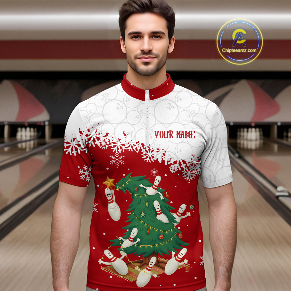 Custom Funny Christmas Bowling Jersey for Men Bowling Team Shirts Polo & 1/4 Zip HNT131