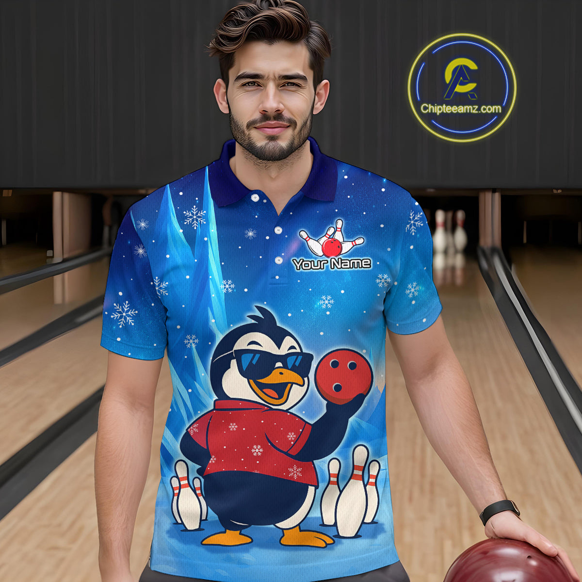 Funny Christmas Penguin Bowling Shirt for Men Custom Bowling Team Jersey Bowling Unisex QZT796