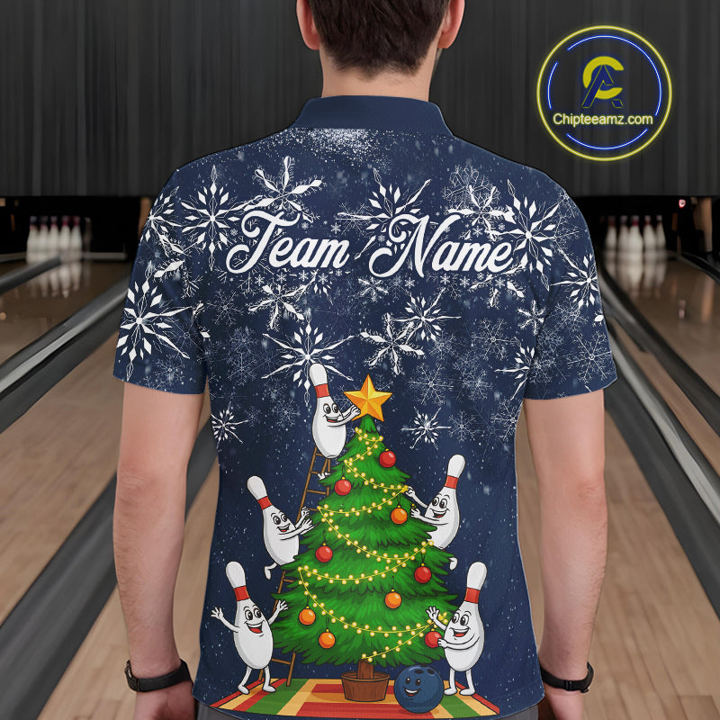 Funny Christmas Tree snowflake Bowling shirts for men Custom Xmas Bowling Outfits Men | Navy NQS10951