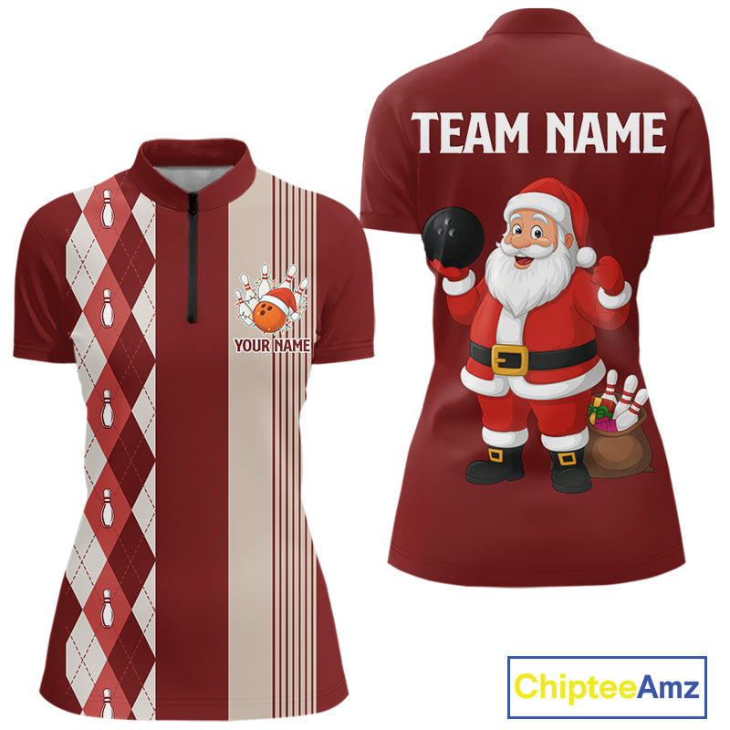 Retro Red argyle pattern Christmas Santa Bowling shirts For Women custom bowling team jerseys Outfits NQS10994