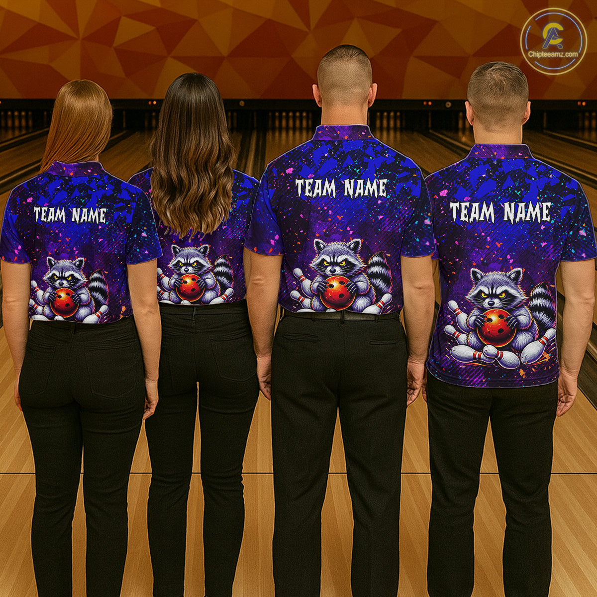 Custom Funny Raccoon Bowling Jersey for Women Bowling Tournament Polo & 1/4 Zip Bowling Team Shirts HNT216