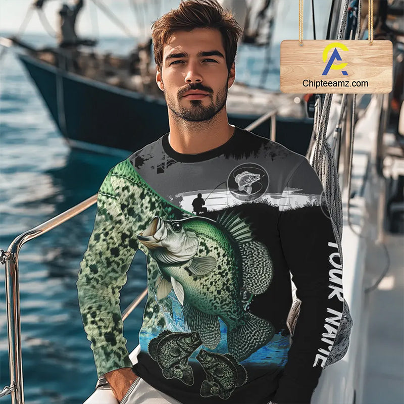 Crappie fishing green scales customize performance long sleeves Fishing shirts, Crappie fishing gifts NQS4794