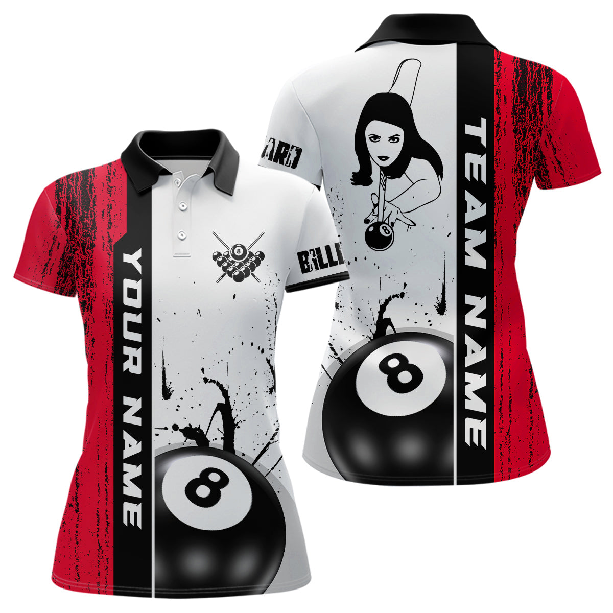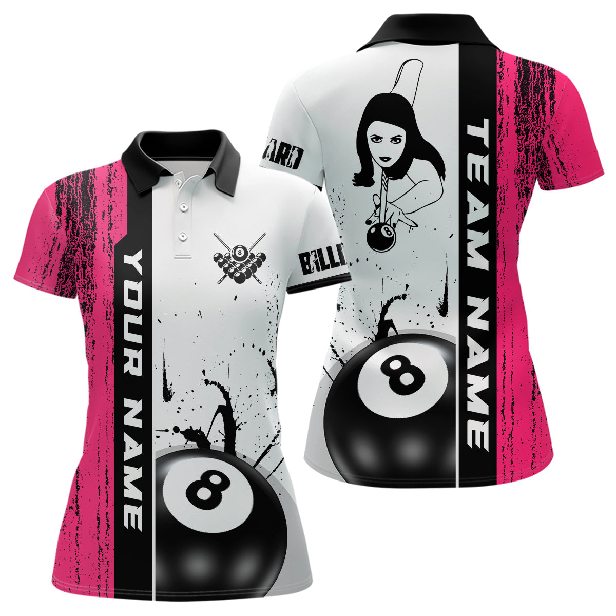 Ball 8 Grunge Ink Style Billiard Polo Shirts For Women Custom Name Billiard Shirt Colors YYD0069