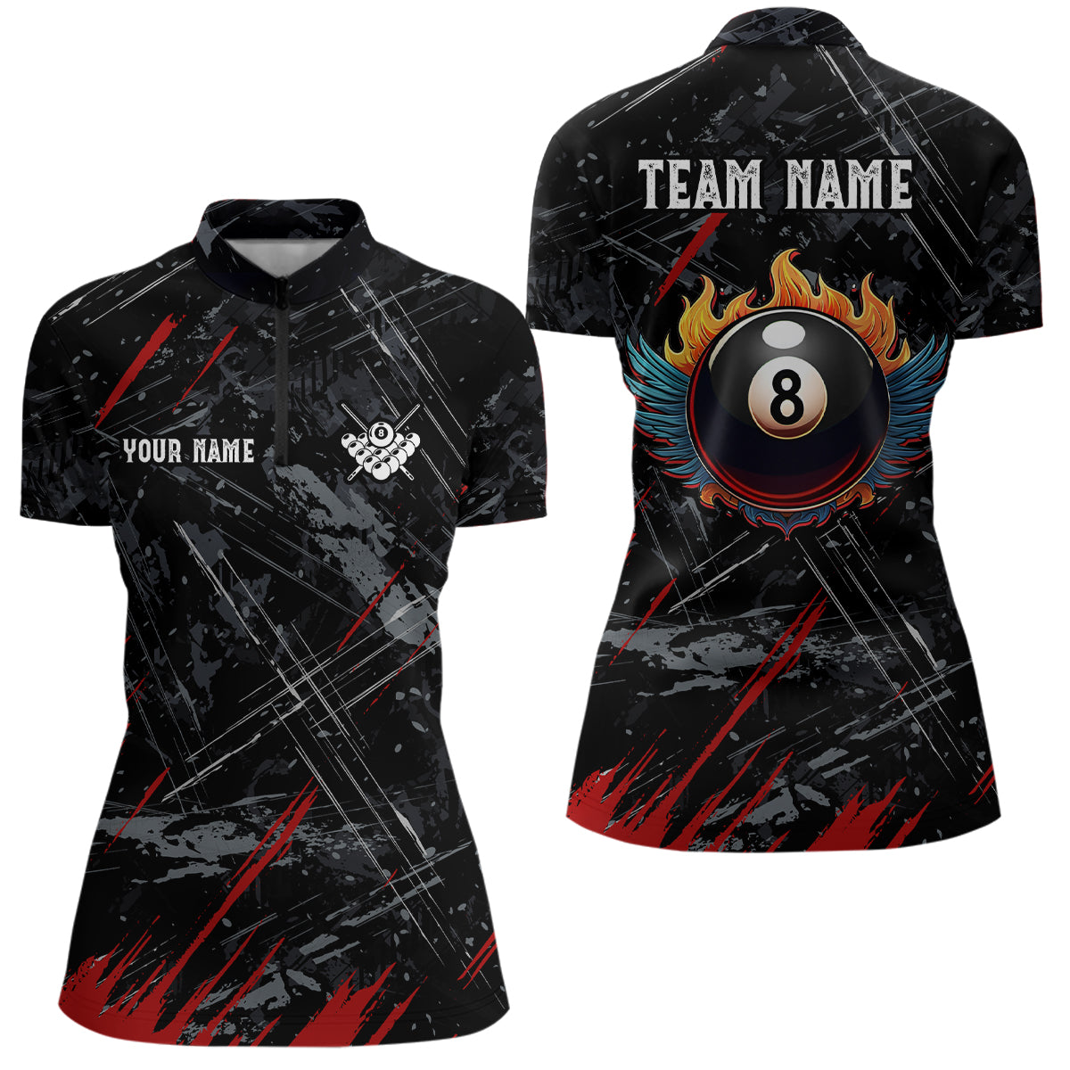 Grunge Ball 8 Billiard Billiard Women Quarter-Zip Shirts Custom Name Billiard Shirt YYD0071
