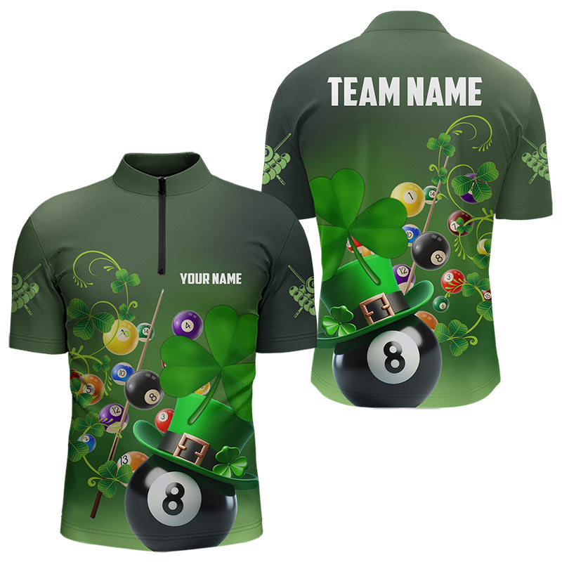 Green Luckiest Shamrock 3D Billiard Balls Pool Shirts For Men Custom St Patrick Day Billiard Jersey TDM3569