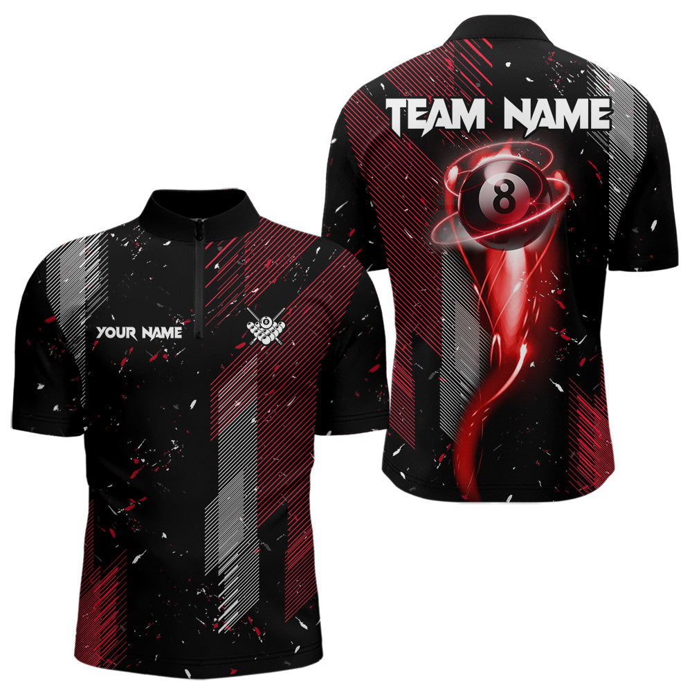 Grunge Black And Red 8 Ball Pool Lights Men's Billiard Shirts Custom Billiard Jersey Polo & 1/4 Zip TDM3780