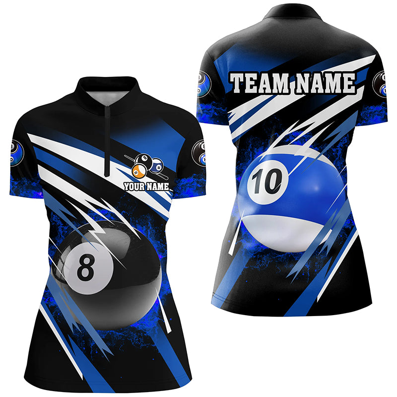 Billiard 8 Ball & 10 Ball Fire Women Polo & Quarter-Zip Shirt Custom Billiard Jersey Attire |Blue TDM1599