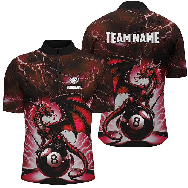Lightning Thunder Dragon Custom Red 8 Ball Pool Shirts For Men, Billiard Team League Jerseys TDM1757