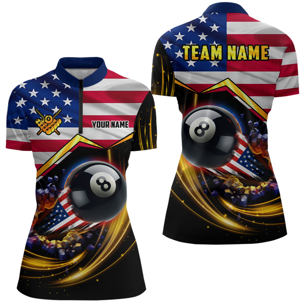 American Flag 8 Ball Pool Billiard Shirts For Women Custom Patriotic 4Th Of July Billiard Jerseys TDM1824