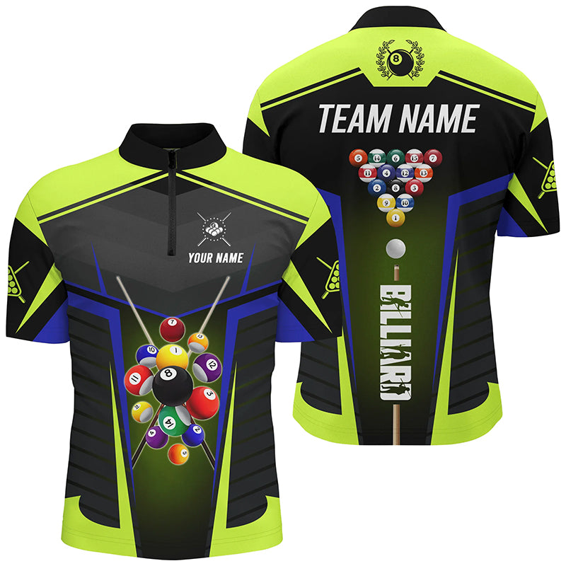 ✔️ Custom Unisex Billiard Shirts Our uniquely designed billiard polo and quarter-zip shirts are ideal for avid poolers who want to make a bold statement. With a stylish form and distinctive design, these shirts set you apart, highlighting your passion and confidence in billiards. Whether you are a professional player or play billiards for fun, we are ready to create great shirts for you and your team. Add your personal touch to create a one-of-a-kind shirt that carries your unique imprint.