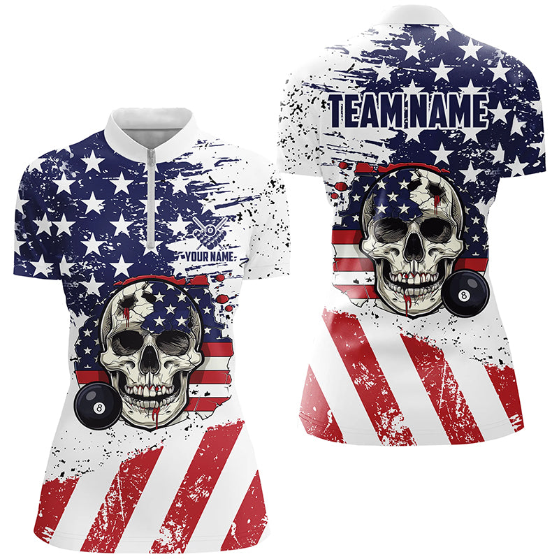Billiard Skull Grunge American Flag Custom Billiard Shirts For Women, Patriotic Billiard Clothing TDM1835