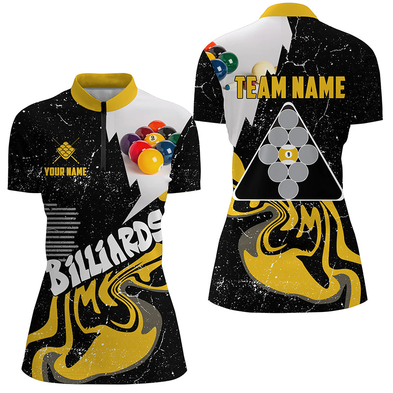 Personalized 9 Ball Billiard Shirts For Women Custom Grunge Yellow Black 9 Ball Pool Jerseys TDM1922