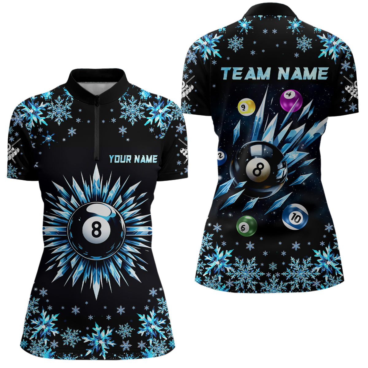 Personalized Blue Frozen 8 Ball Pool Billiard Shirts For Women Custom Billiard Balls Team Jerseys TDM1927